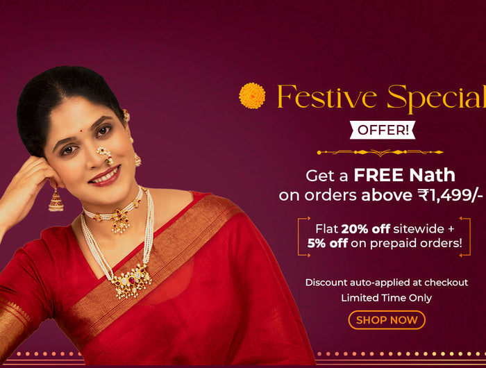 Explore More Out of stock20% OFF Add to cart Stellar Moon TopsRs. 420.00 Rs. 336.00 20% OFF Add to cart Teardrop Bloom TopsRs. 350.00 Rs. 280.00 20% OFF Add to cart Pooja BanglesRs. 1,399.00 20% OFF Add to cart Pearl Blossom TopsRs. 399.00 Rs. 319.20 20% OFF Add to cart Petite Dome JummarRs. 949.00 Explore More Festive Special: Get 20% OFF sitewide + an extra 5% OFF on prepaid orders | Discount auto-applied at checkout. Shop by Category Free Shipping Order Above Rs. 799/- Ornaments of Elegance: Necklaces Shop by Price Watch And Buy Add to cart Add to cart Add to cart Add to cart Add to cart Add to cart Shop the Look 20% OFF Starry Petal ChokerRs. 2,549.00 Add to cart 20% OFF Royal Tapestry Long KanthaRs. 3,699.00 Add to cart 20% OFF Dewdrop Elegance BugadiRs. 399.00 Rs. 319.20 Add to cart 20% OFF Four Line Moti BanglesRs. 3,500.00 Add to cart Login Email* Password* Toon Hide Forgot your password? Sign in Don't have an account yet? Create account