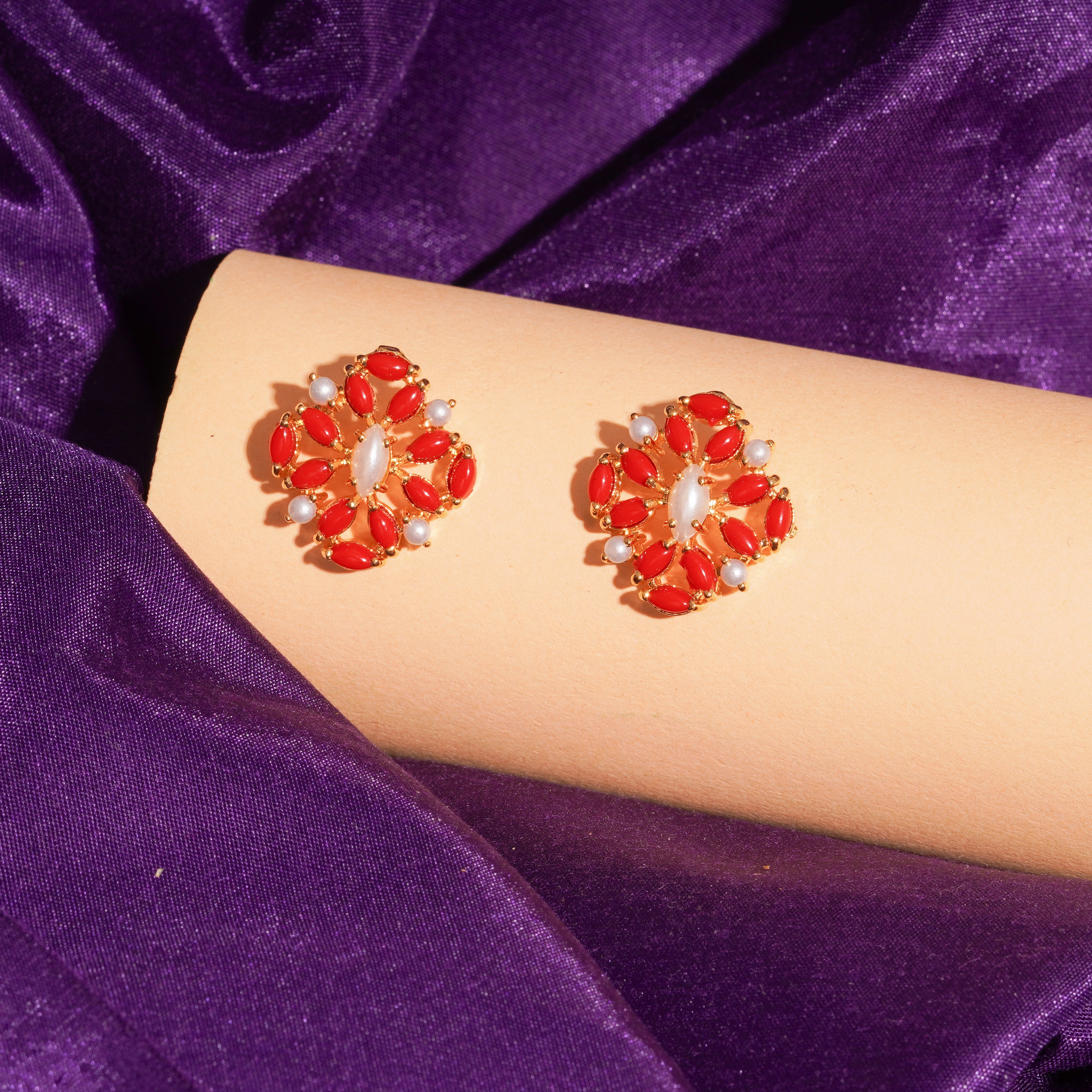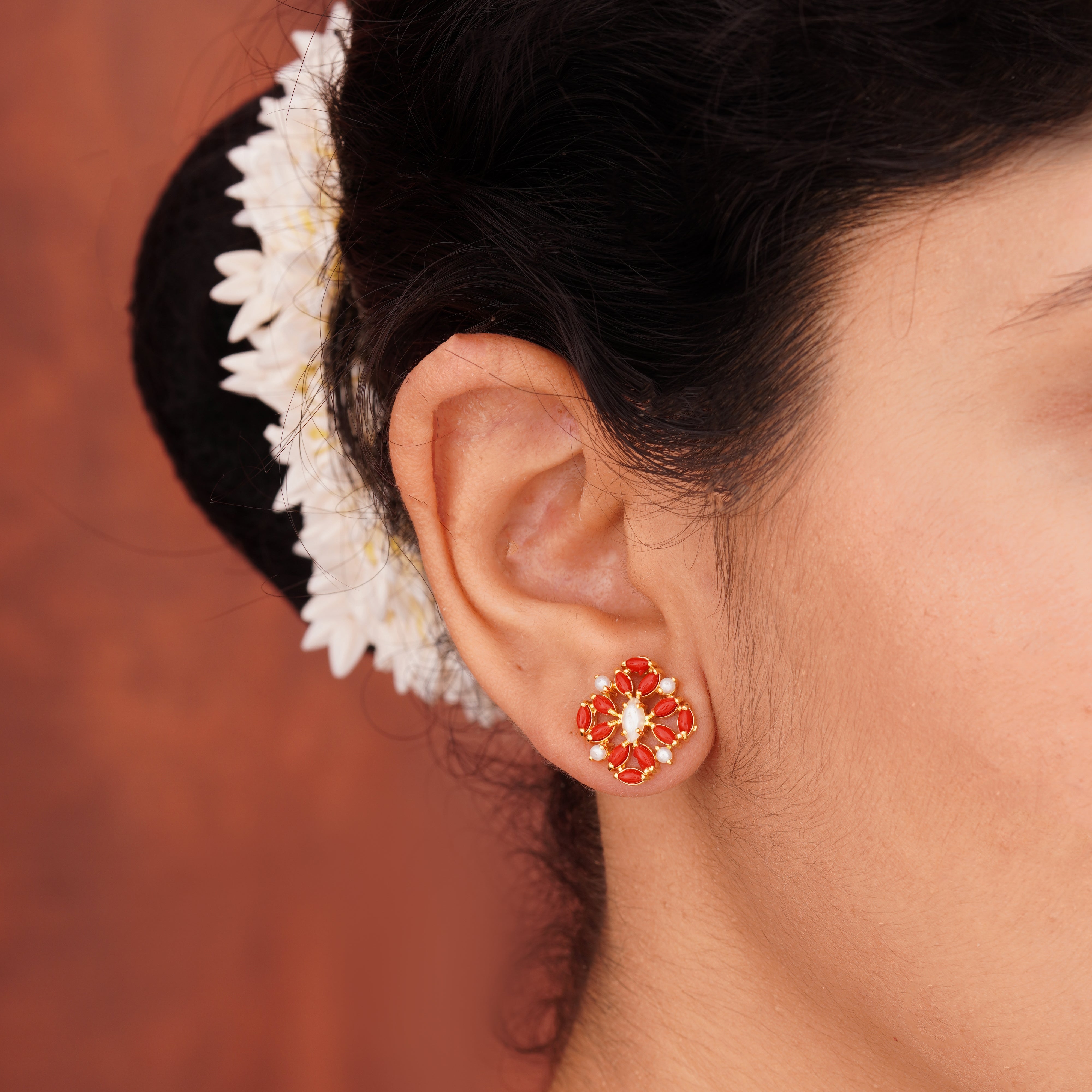 Inspired by tradition, these Coral Moti (Pawla Moti) Ear Tops are handcrafted with love and made from semi-precious stones in premium quality.