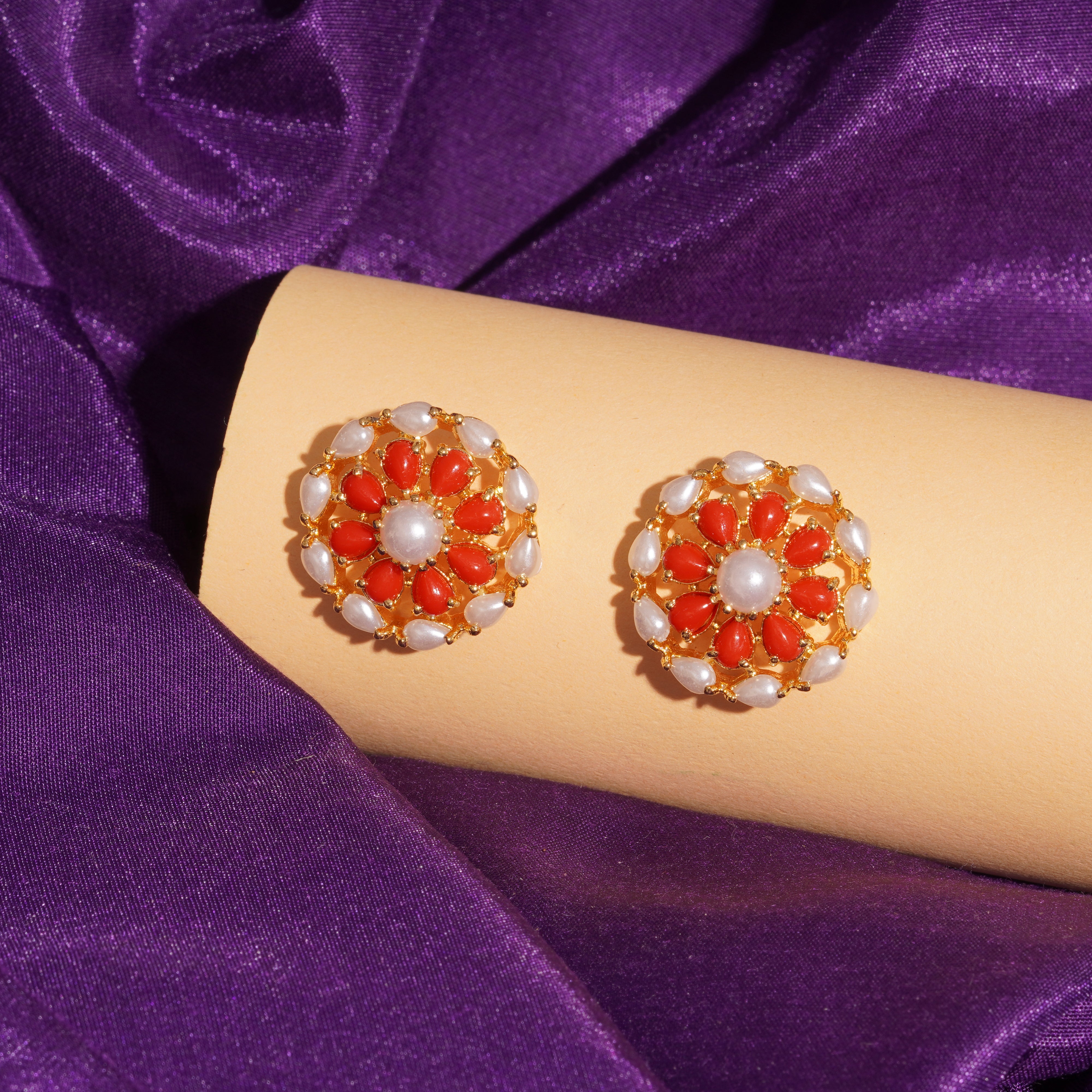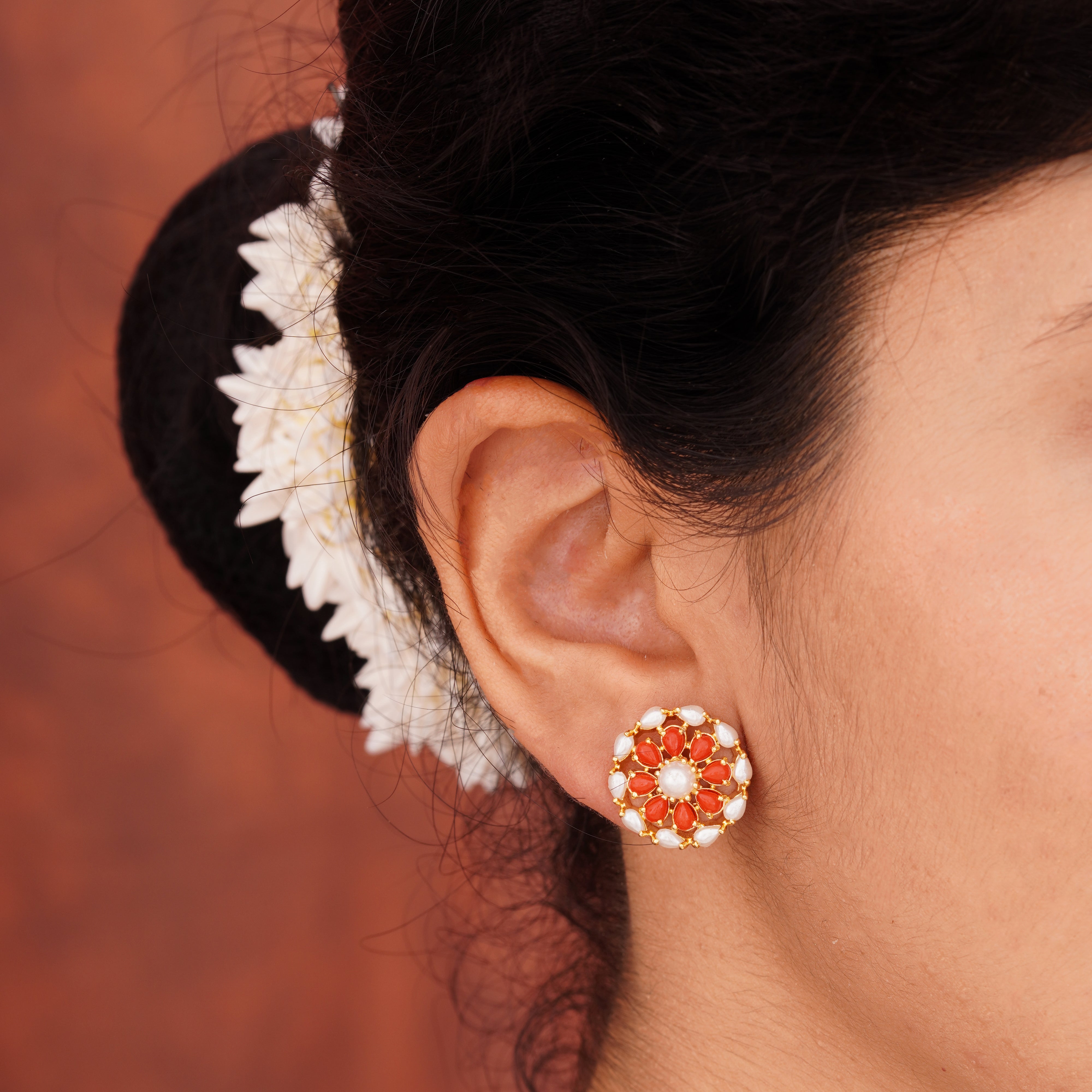 Inspired by tradition, these Coral Moti (Pawla Moti) Silver Ear Tops are handcrafted with love and made from semi-precious stones in premium silver.