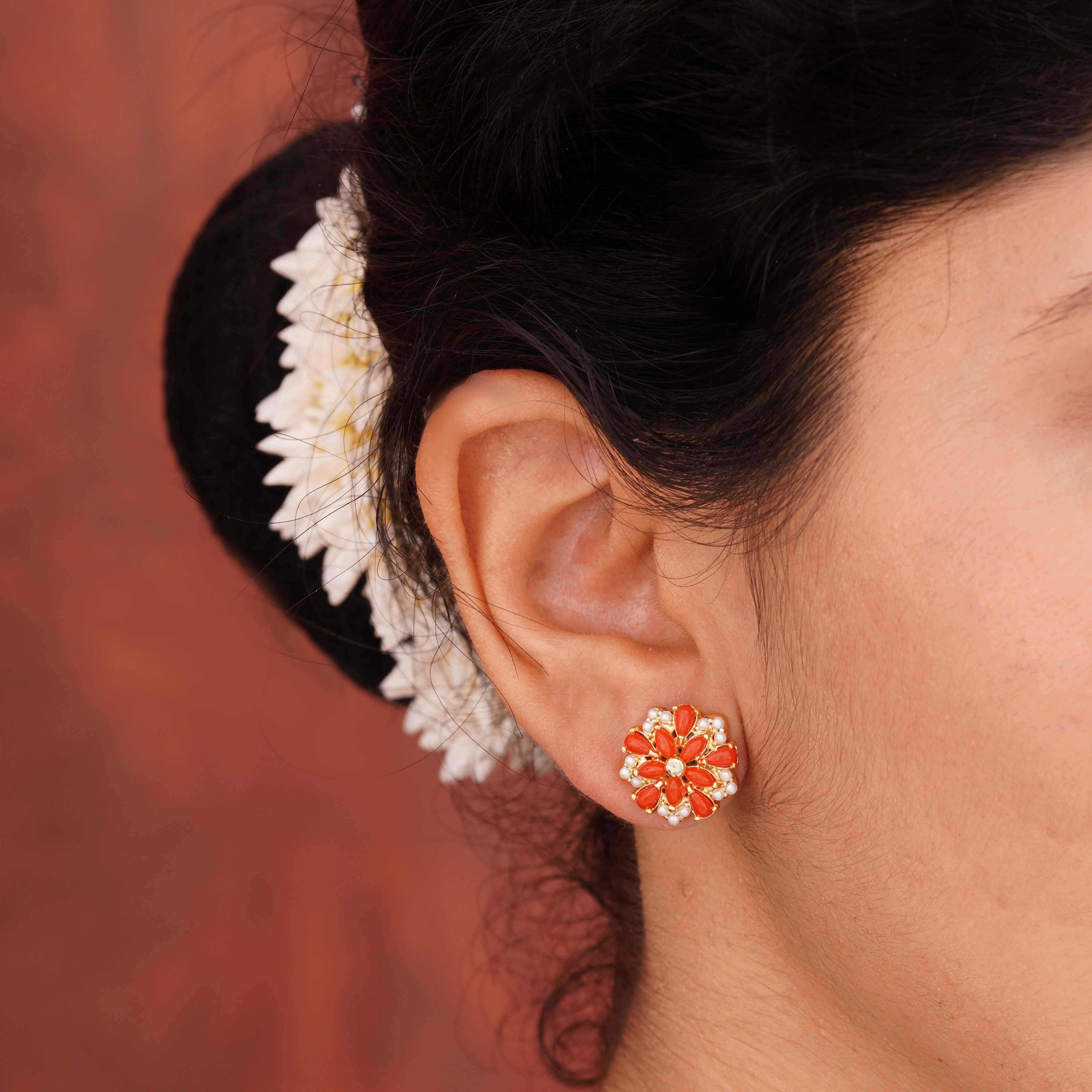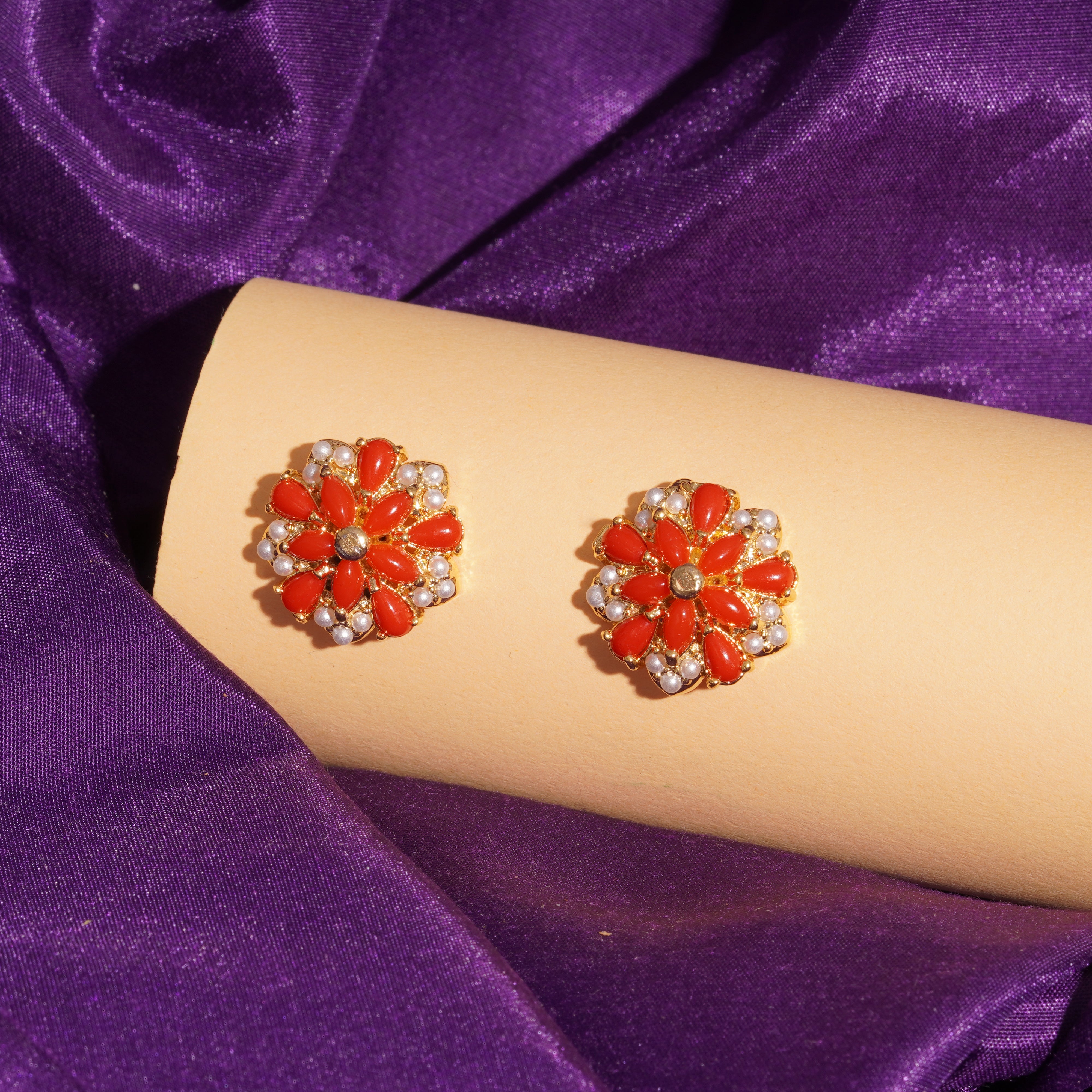 Inspired by tradition, these Coral Moti (Pawla Moti) Silver Ear Tops are handcrafted with love and made from semi-precious stones in premium silver.