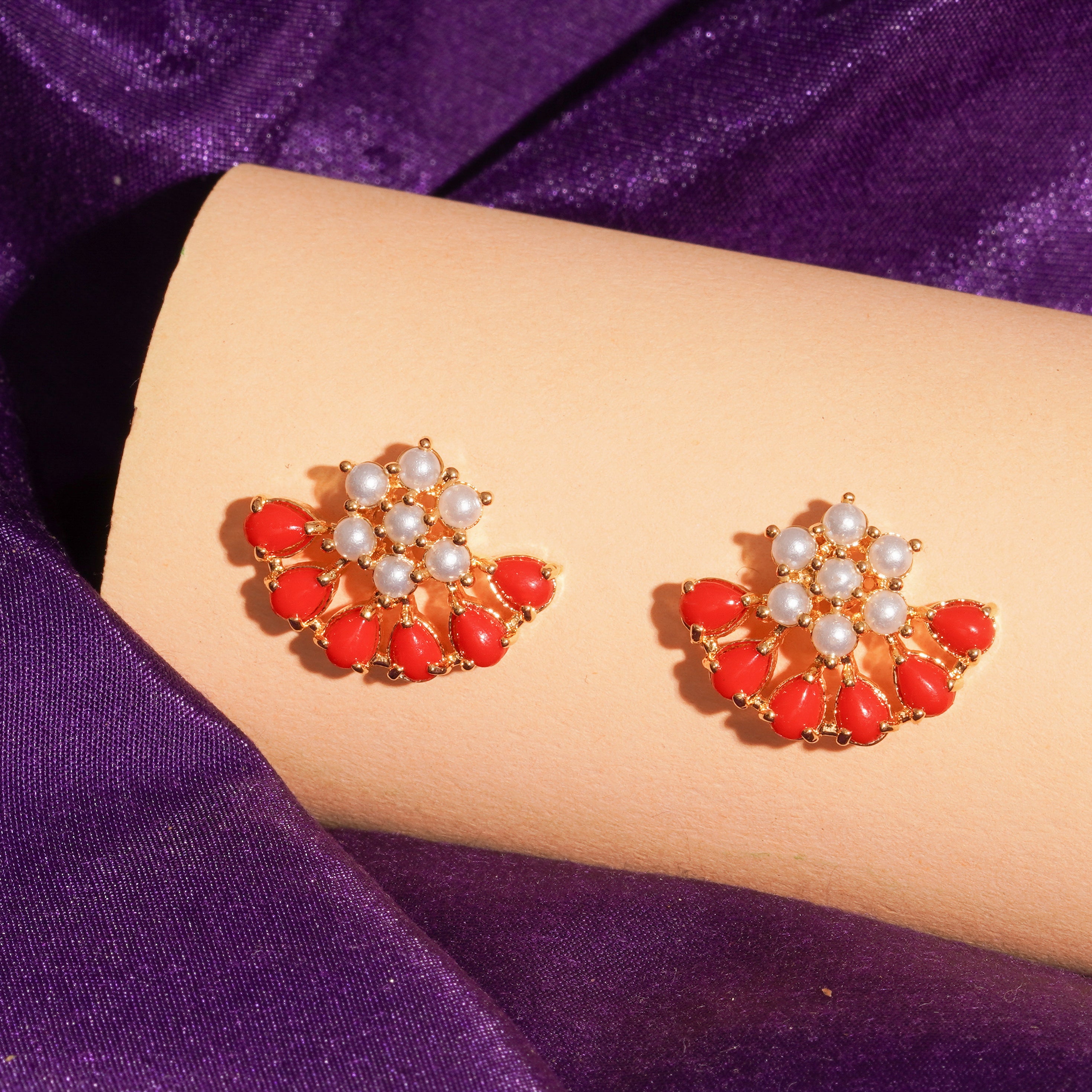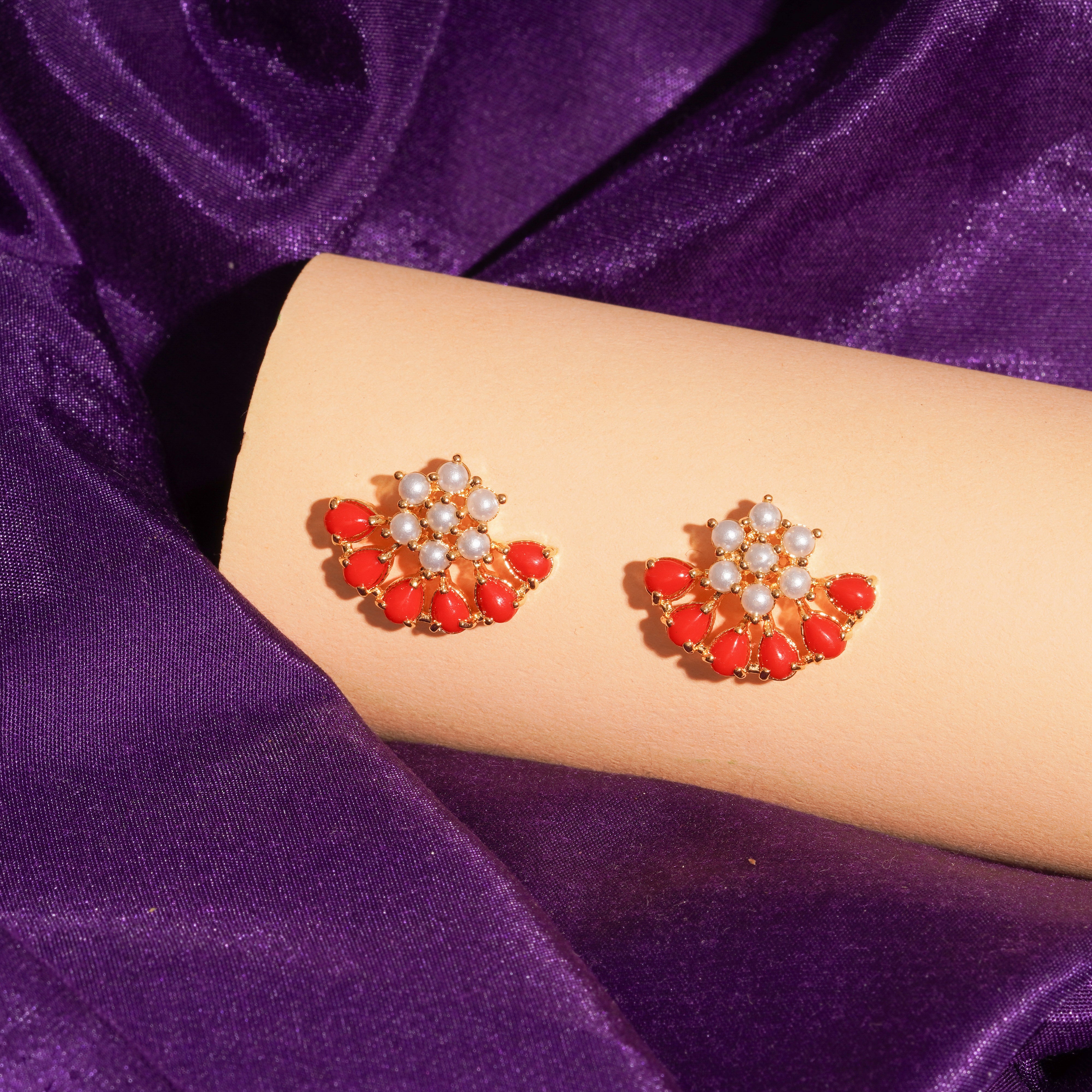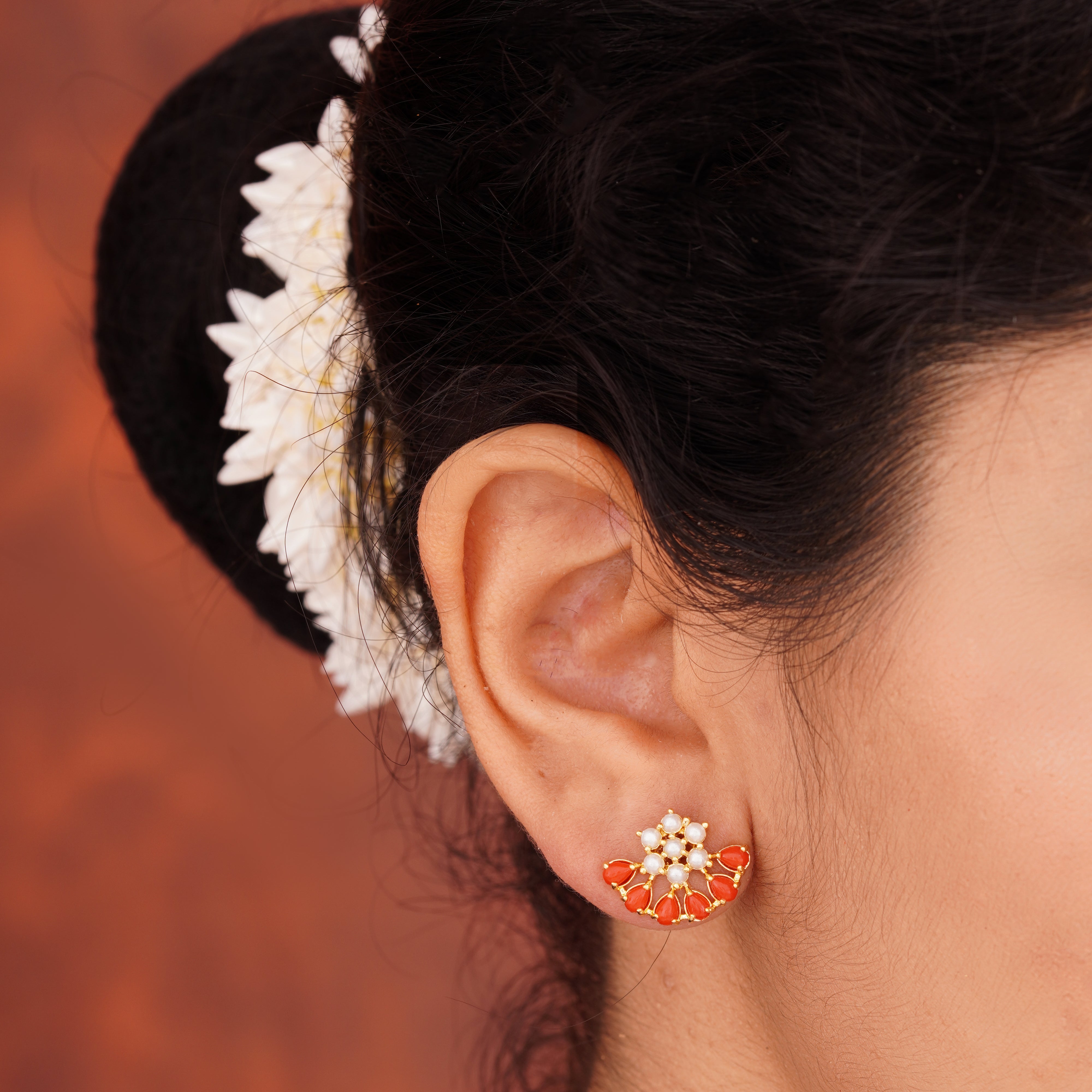 Inspired by tradition, these Coral Moti (Pawla Moti) Silver Ear Tops are handcrafted with love and made from semi-precious stones in premium silver.