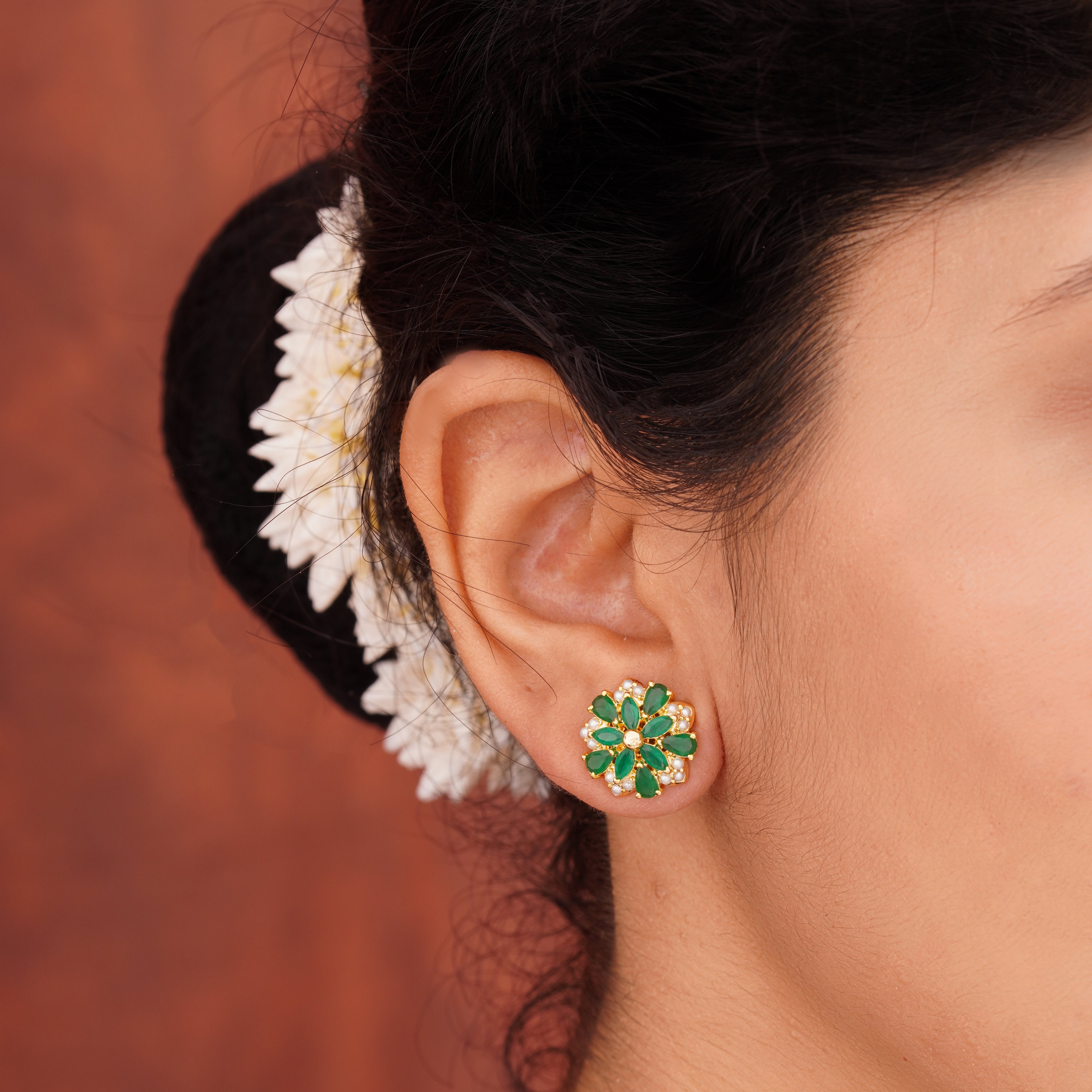 Explore our handcrafted Handcrafted Embeald Moti Silver Ear Tops, made with high-quality silver and designed for timeless elegance.