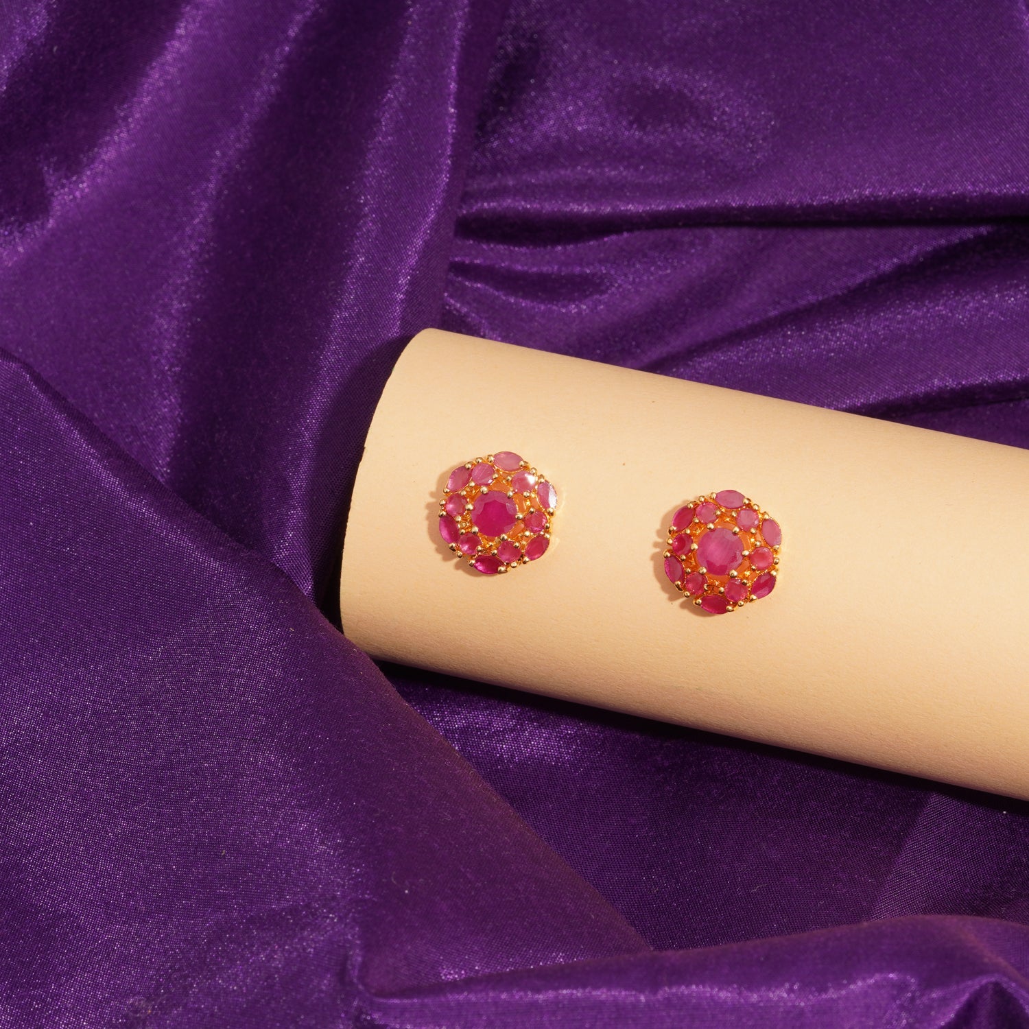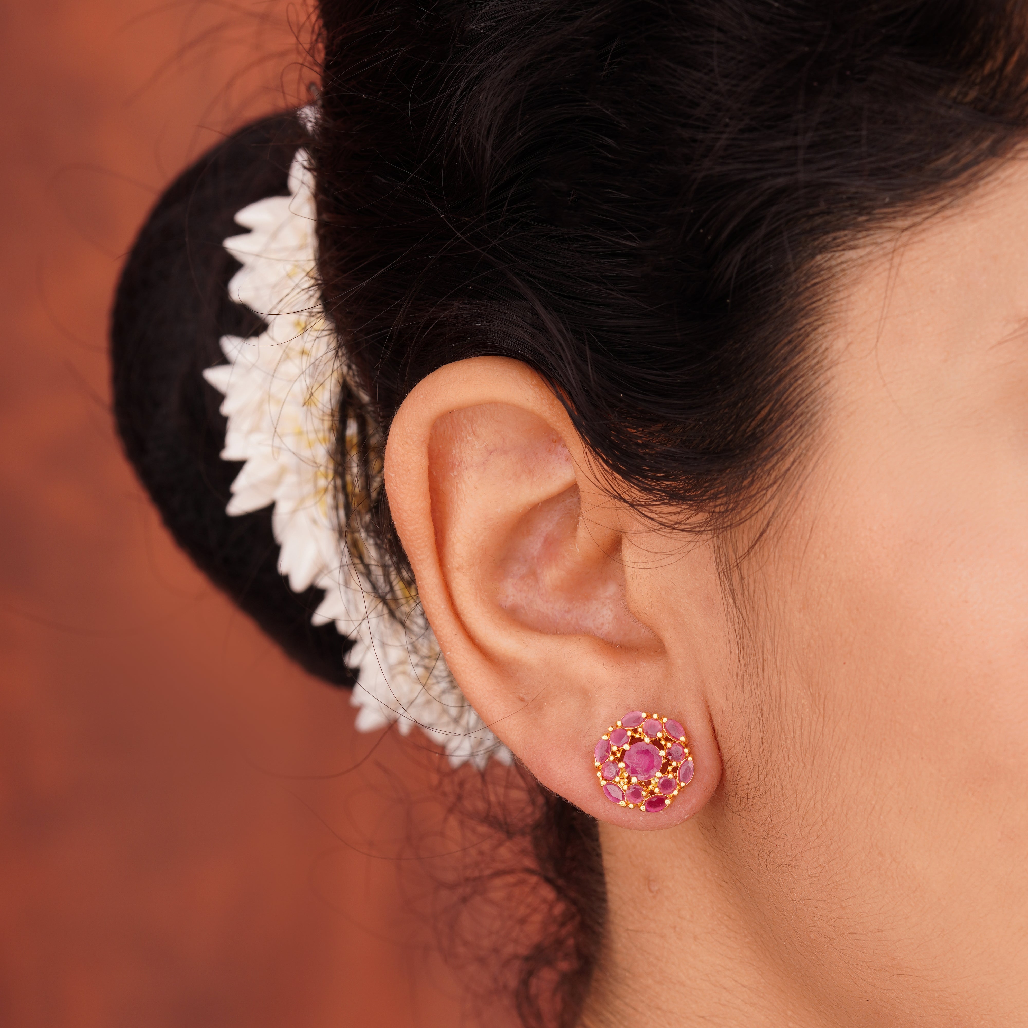 Add charm to your look with these elegant Ruby Silver Ear Tops. Crafted in pure silver with semi-precious stones, perfect for traditional and modern styles.
