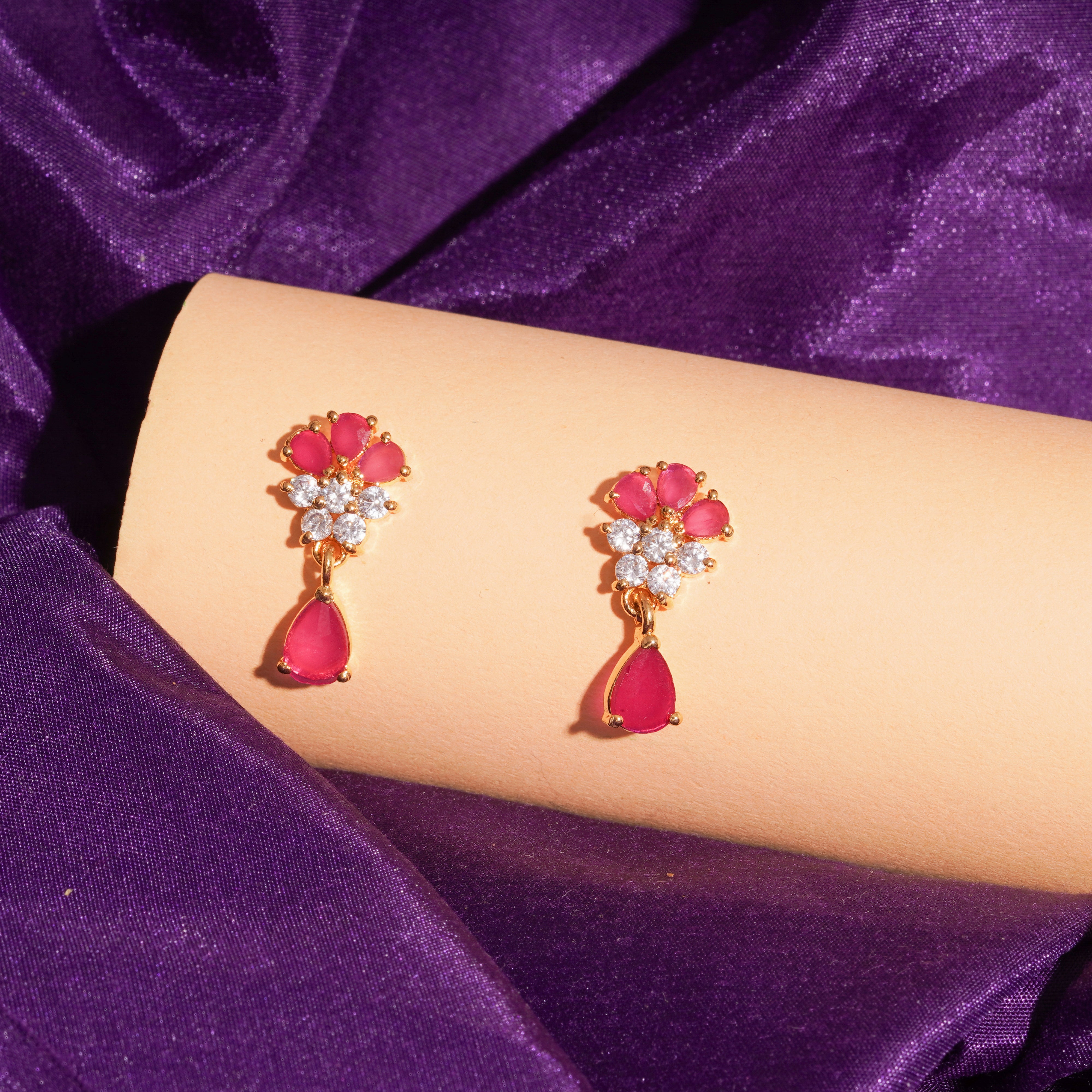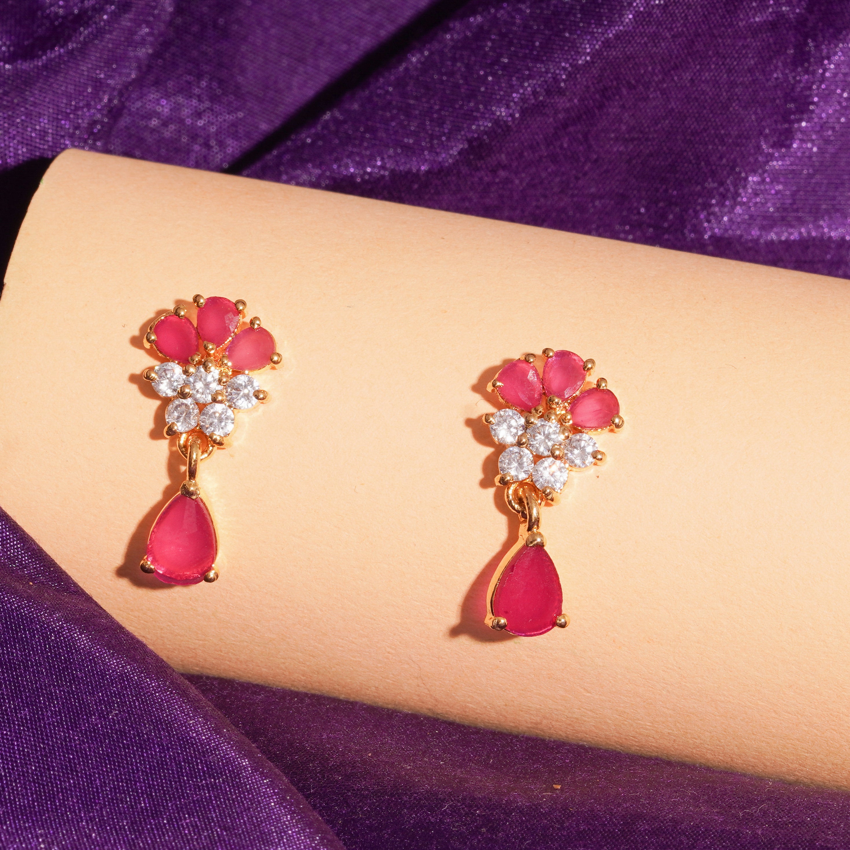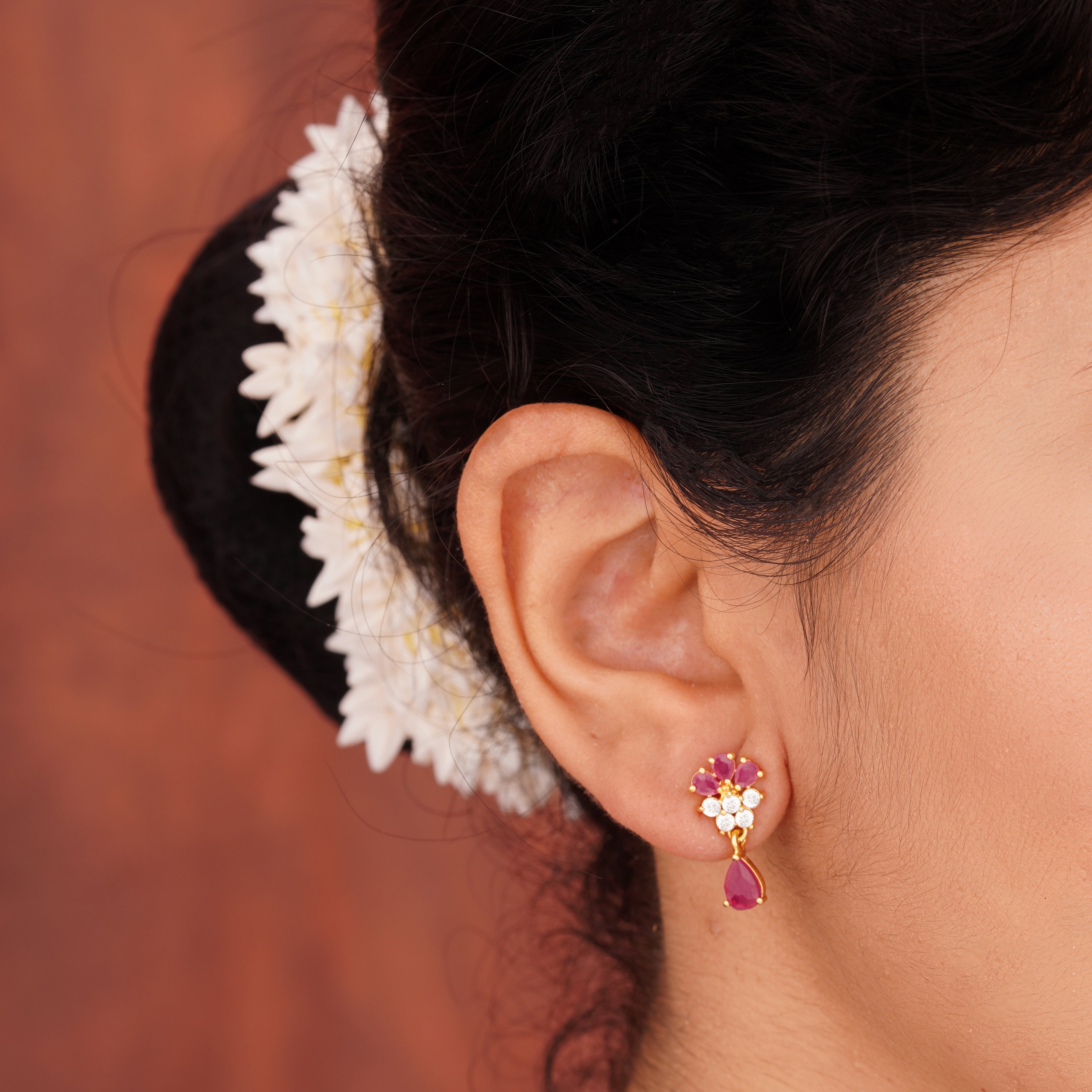 Discover the elegance of handcrafted Ruby AD Silver Ear Tops, made with semi-precious stones and premium quality silver. Perfect for festive and daily wear.