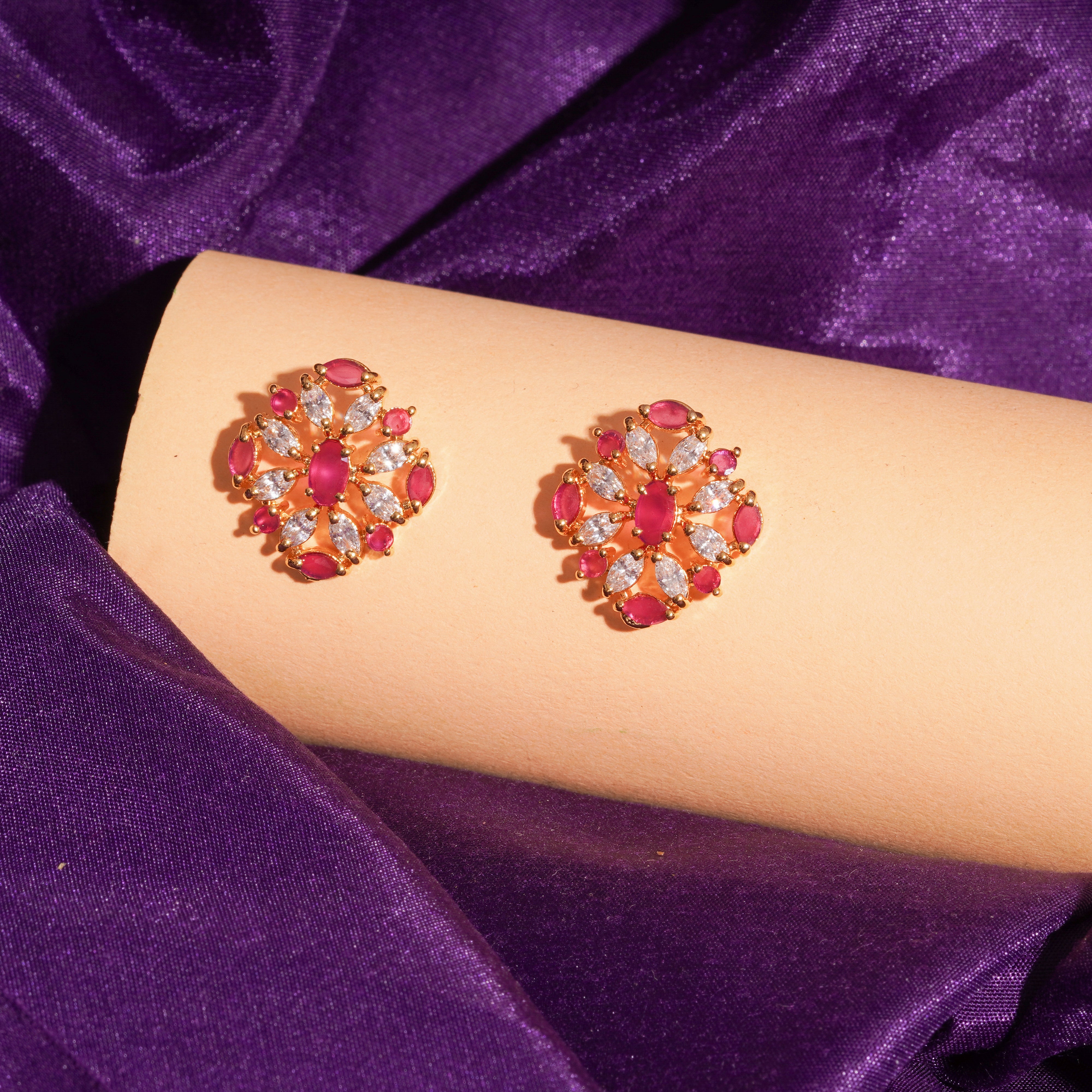Discover the elegance of handcrafted Ruby AD Silver Ear Tops, made with semi-precious stones and premium quality silver. Perfect for festive and daily wear.