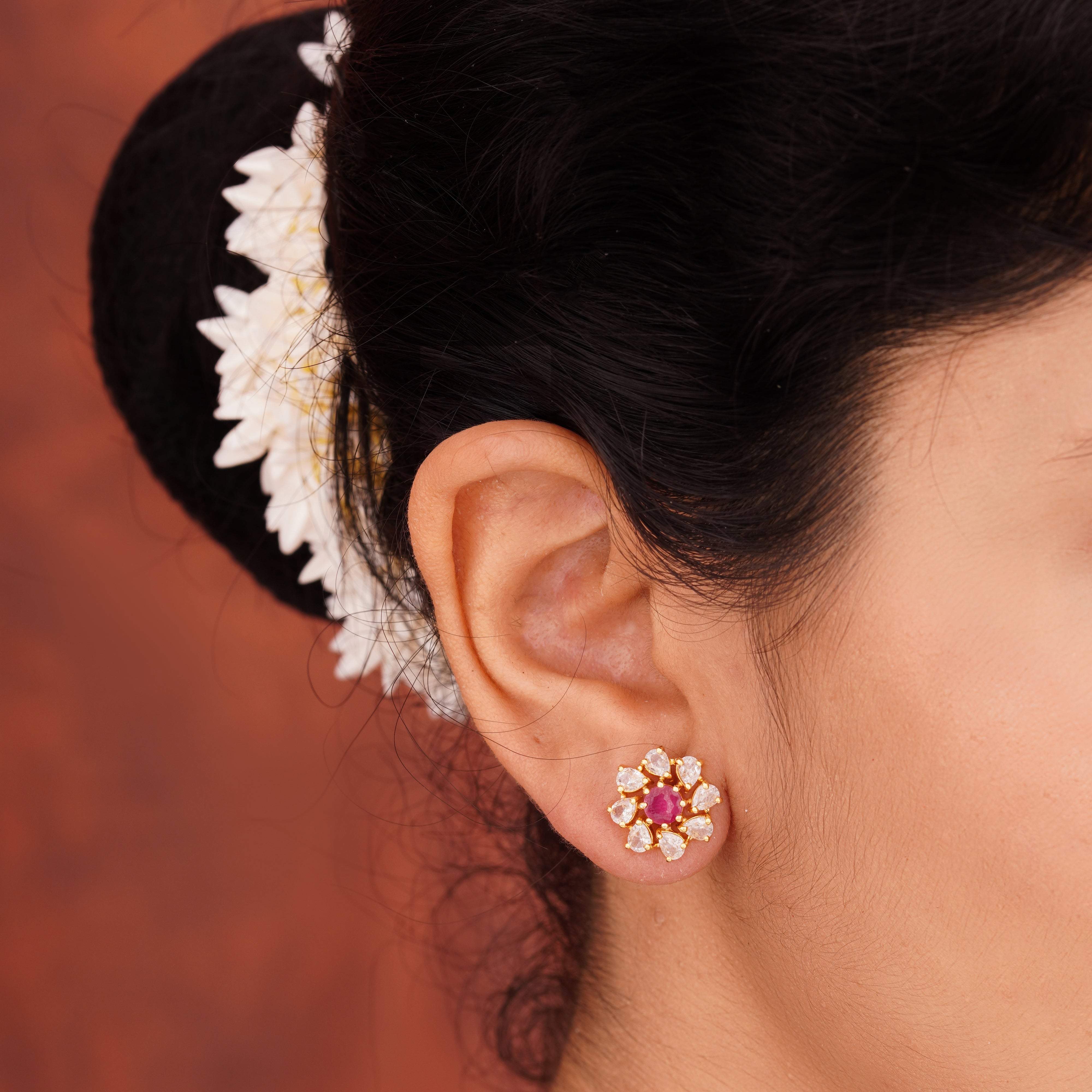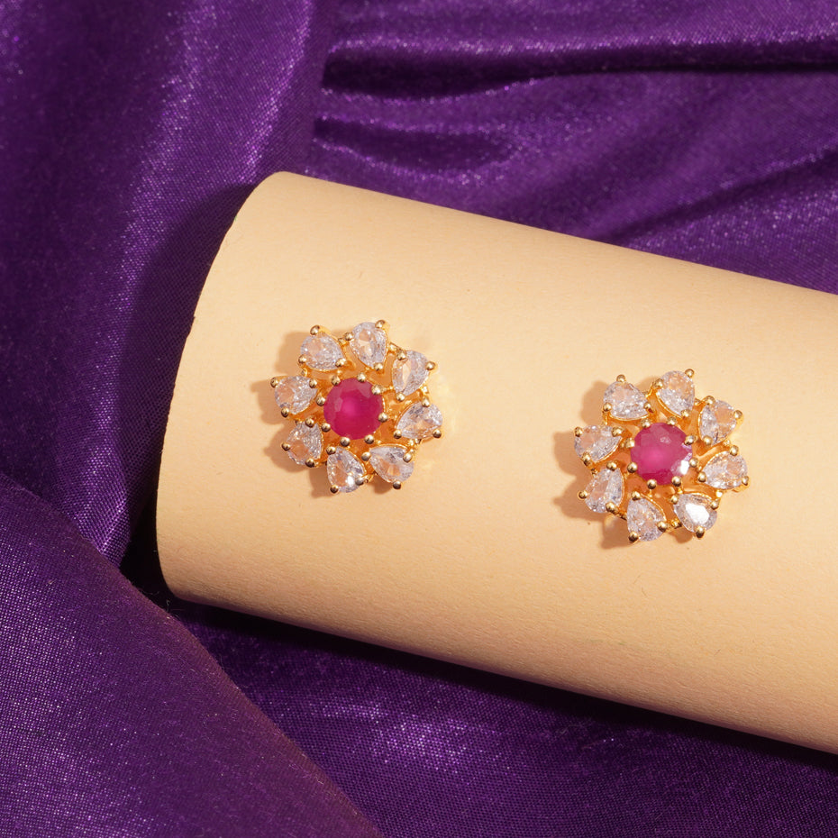 Discover the elegance of handcrafted Ruby AD Silver Ear Tops, made with semi-precious stones and premium quality silver. Perfect for festive and daily wear.