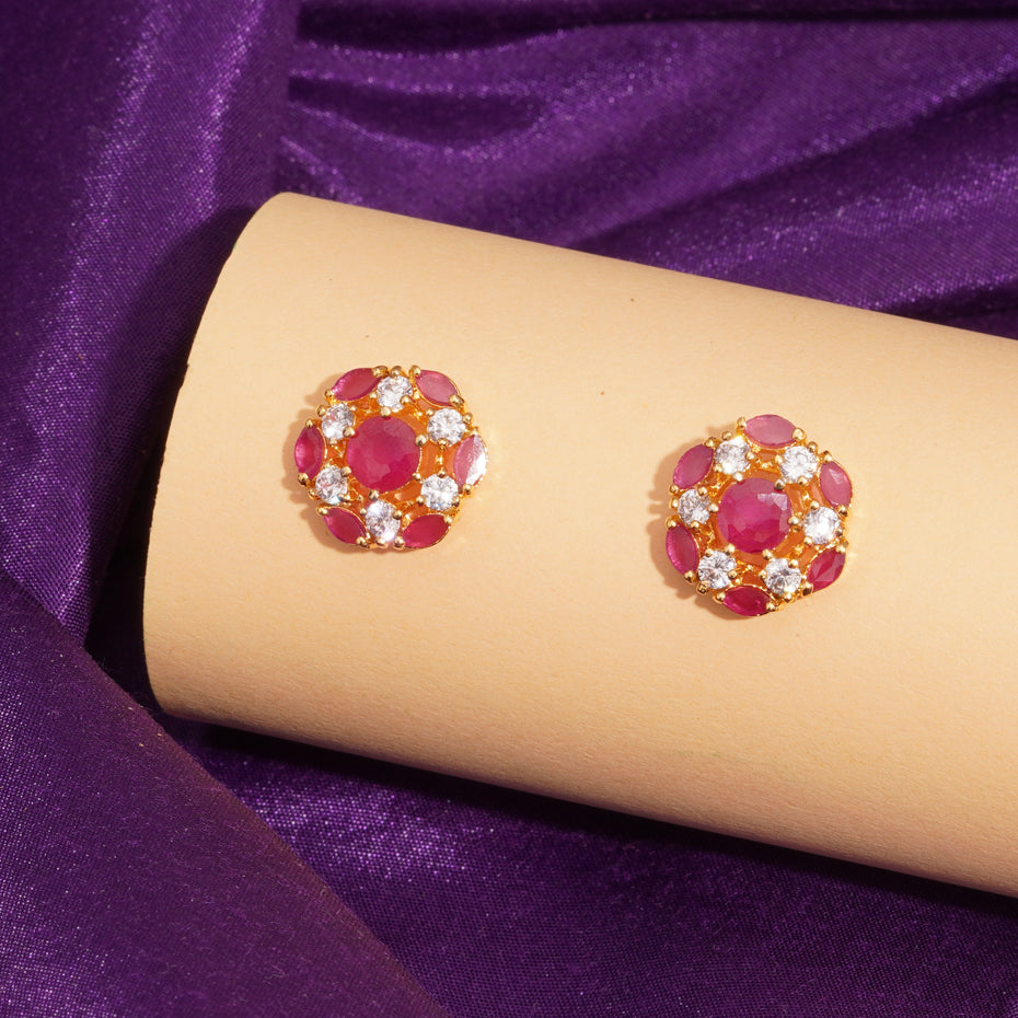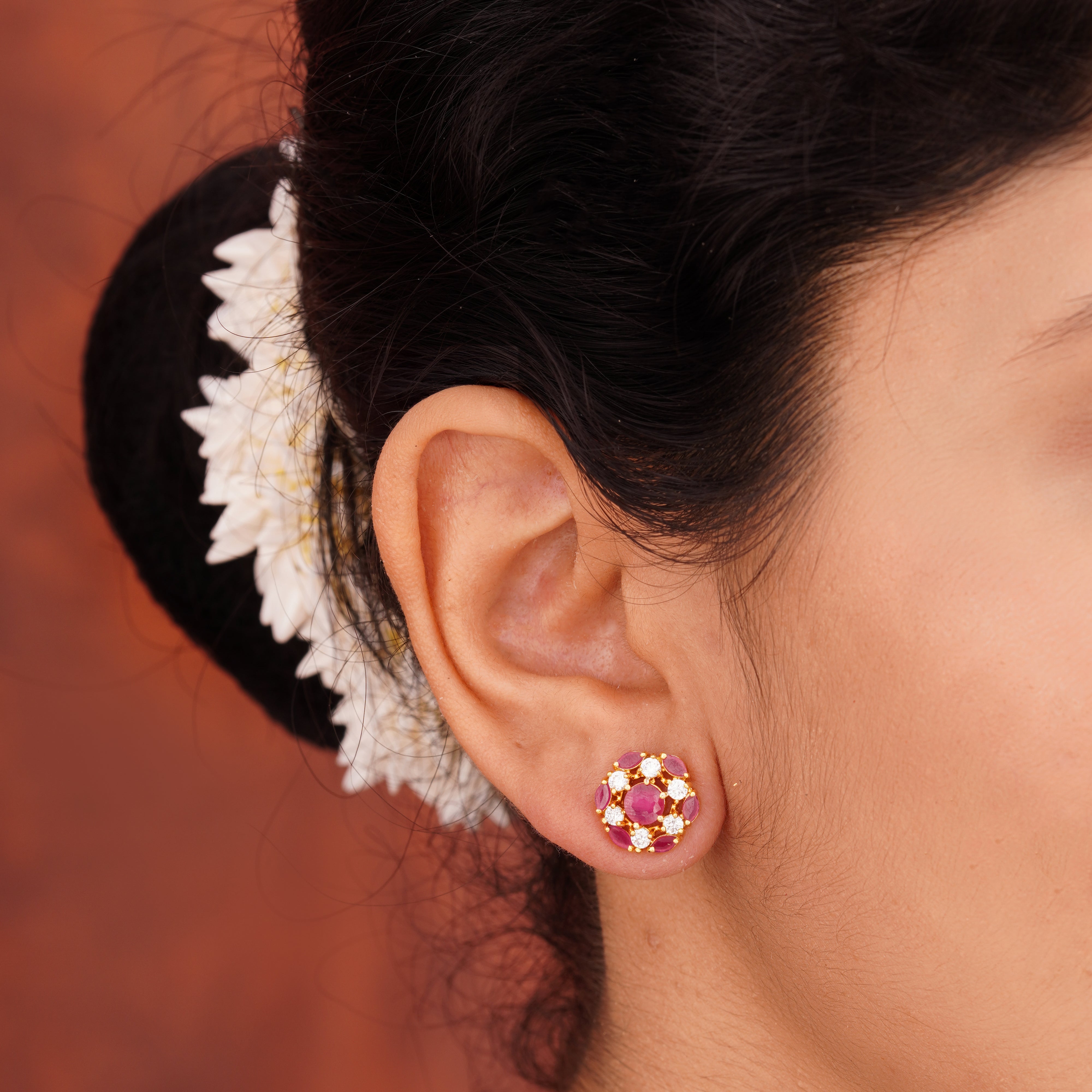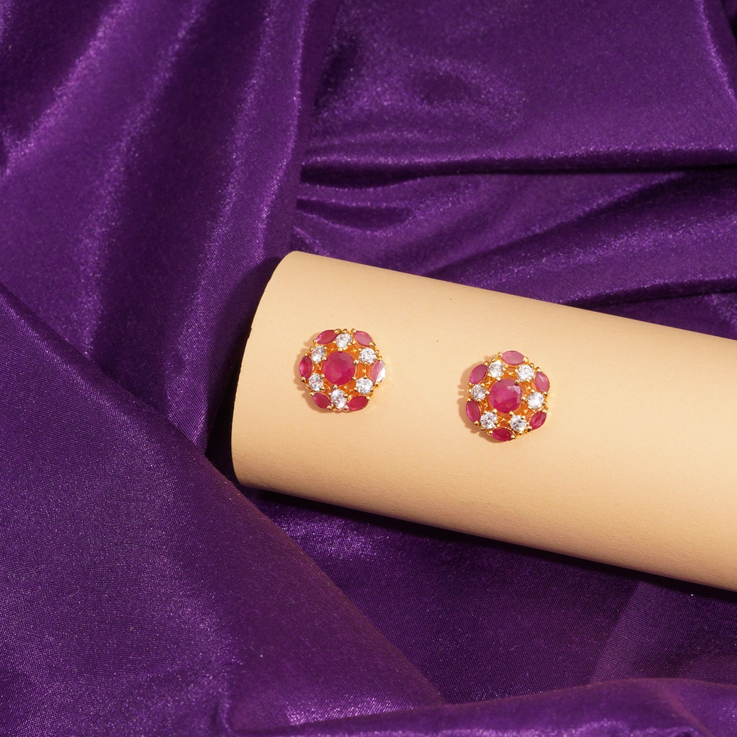 Discover the elegance of handcrafted Ruby AD Silver Ear Tops, made with semi-precious stones and premium quality silver. Perfect for festive and daily wear.
