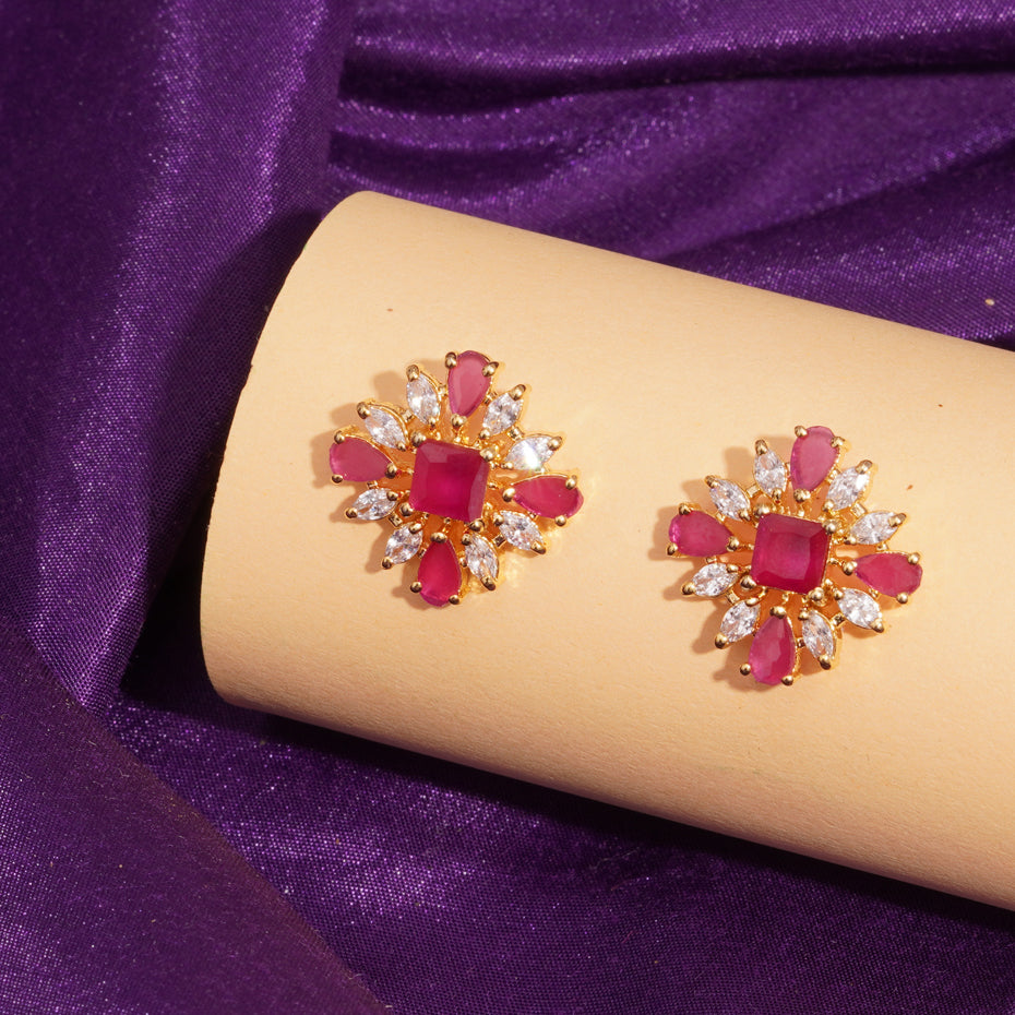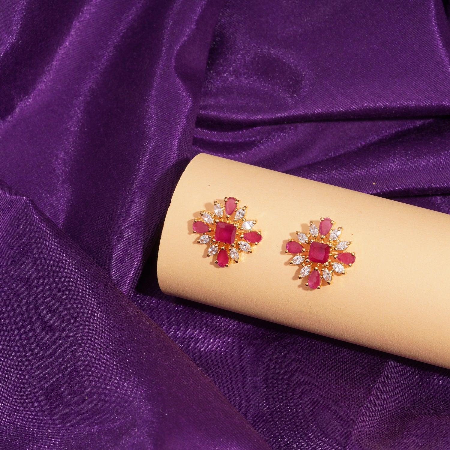 Discover the elegance of handcrafted Ruby AD Silver Ear Tops, made with semi-precious stones and premium quality silver. Perfect for festive and daily wear.