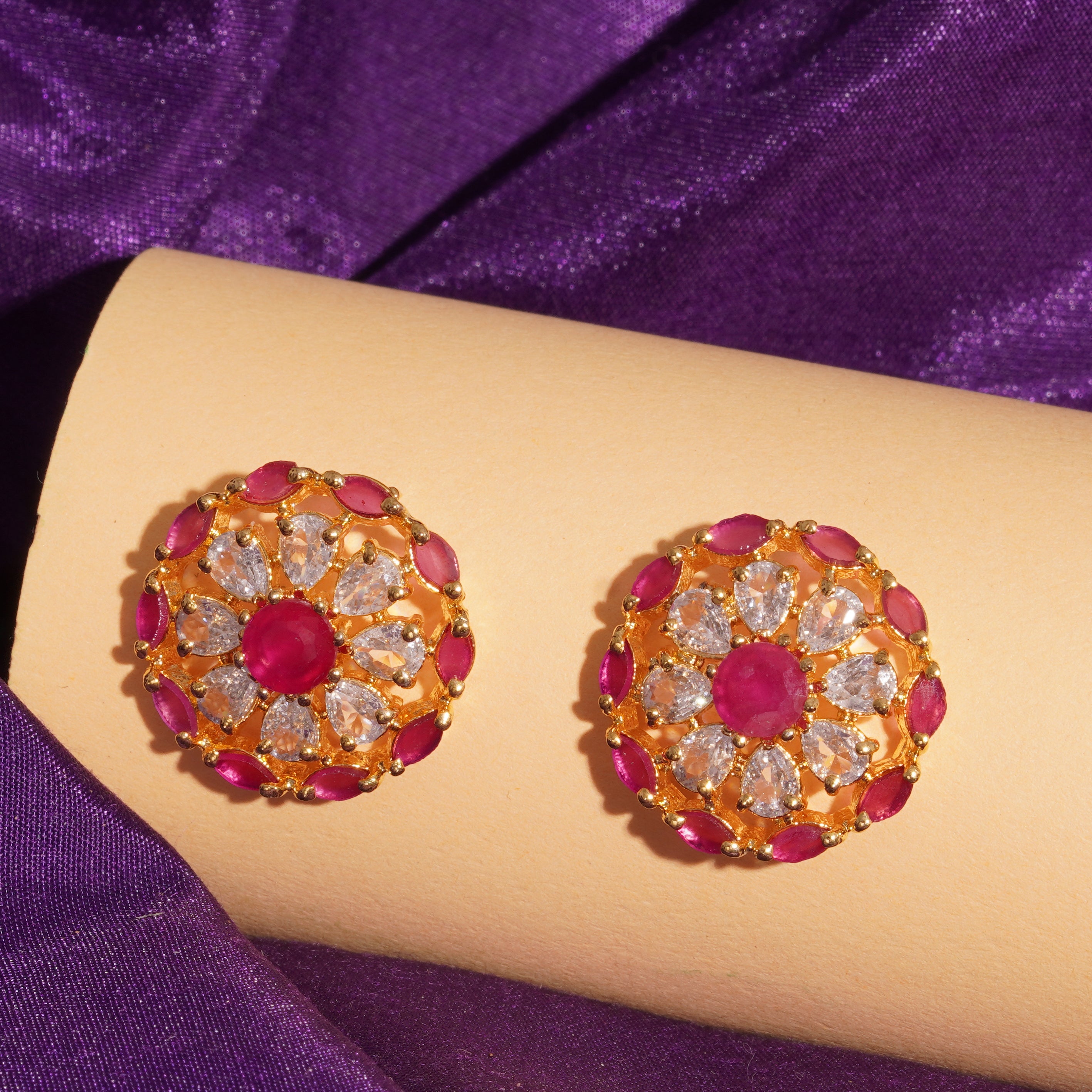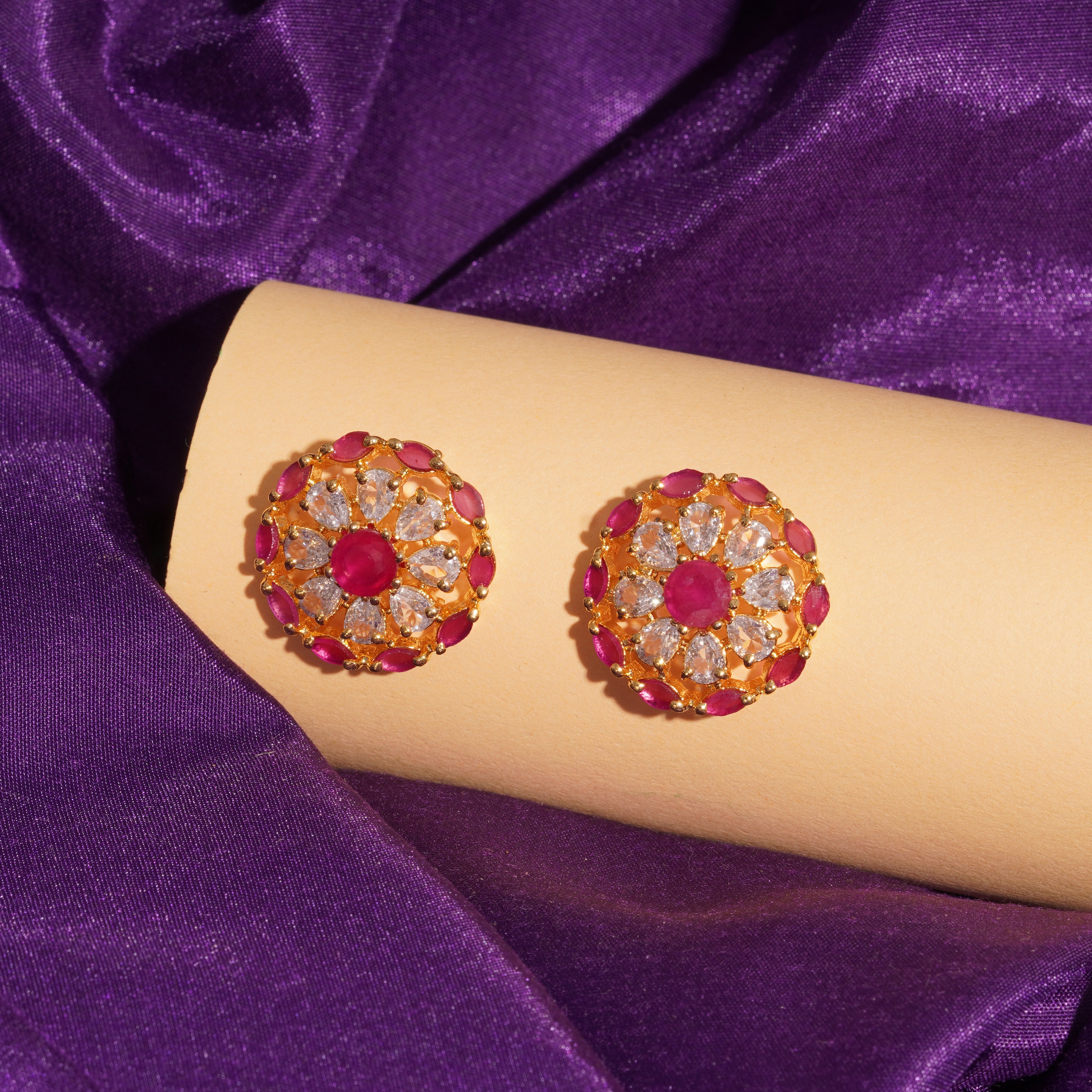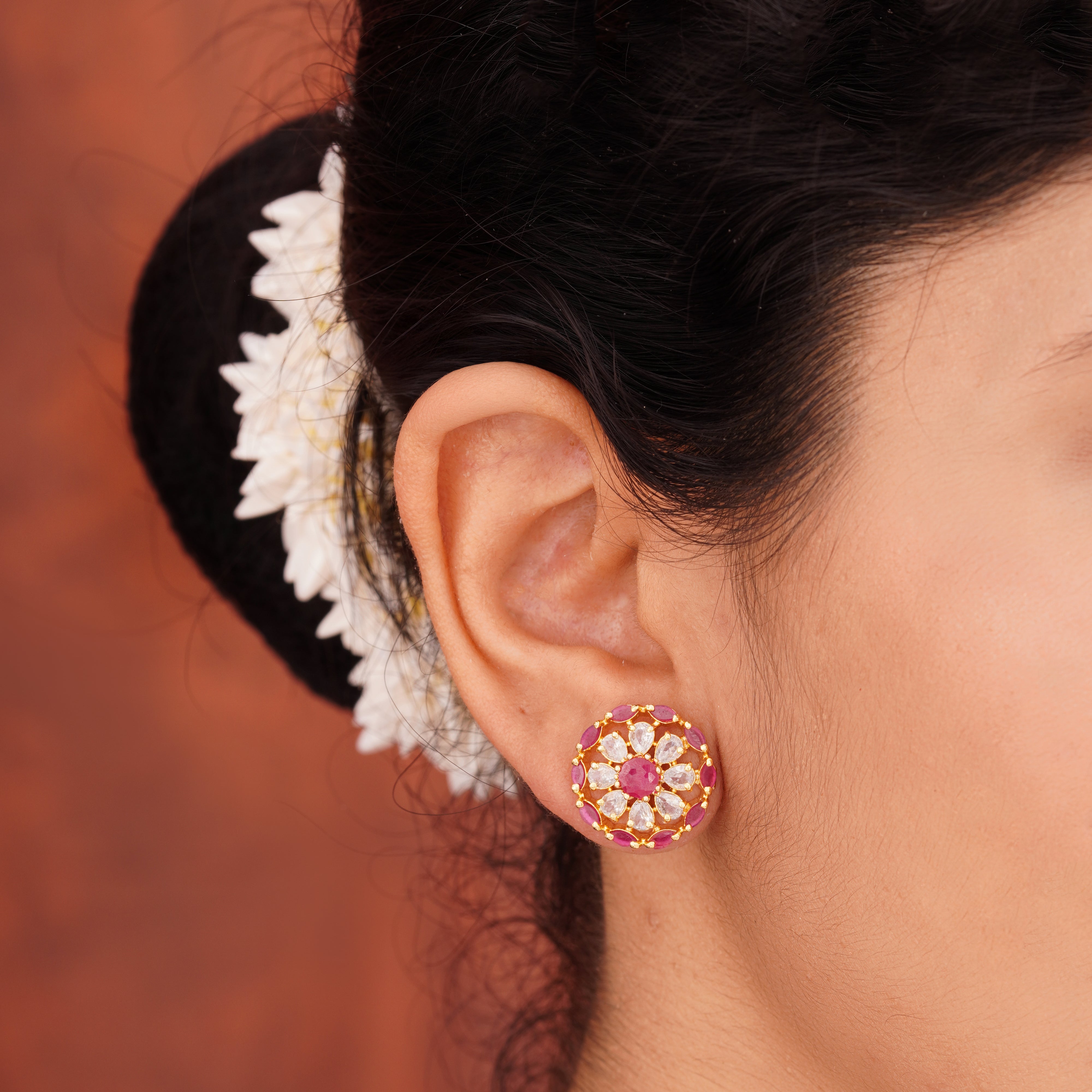 Discover the elegance of handcrafted Ruby AD Silver Ear Tops, made with semi-precious stones and premium quality silver. Perfect for festive and daily wear.