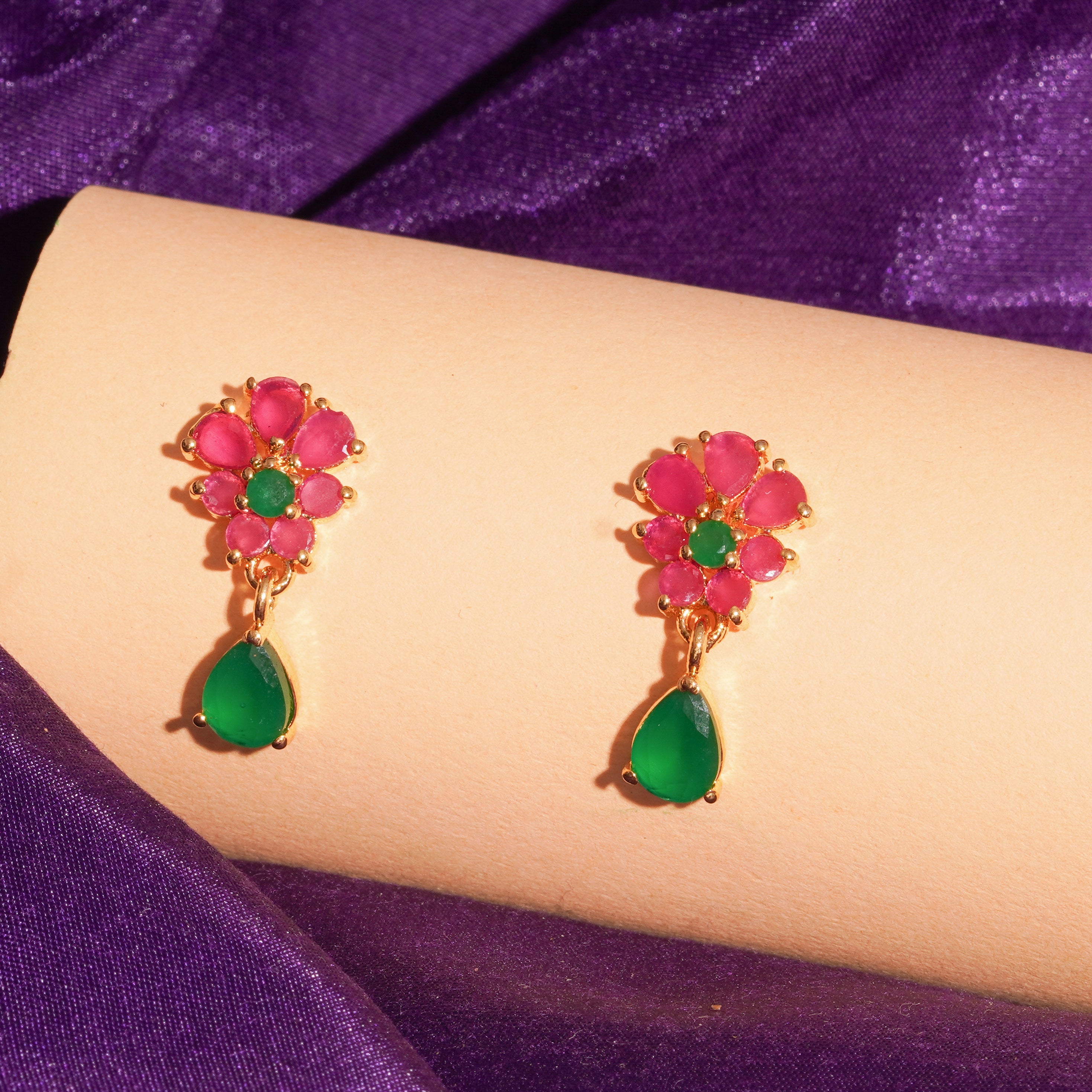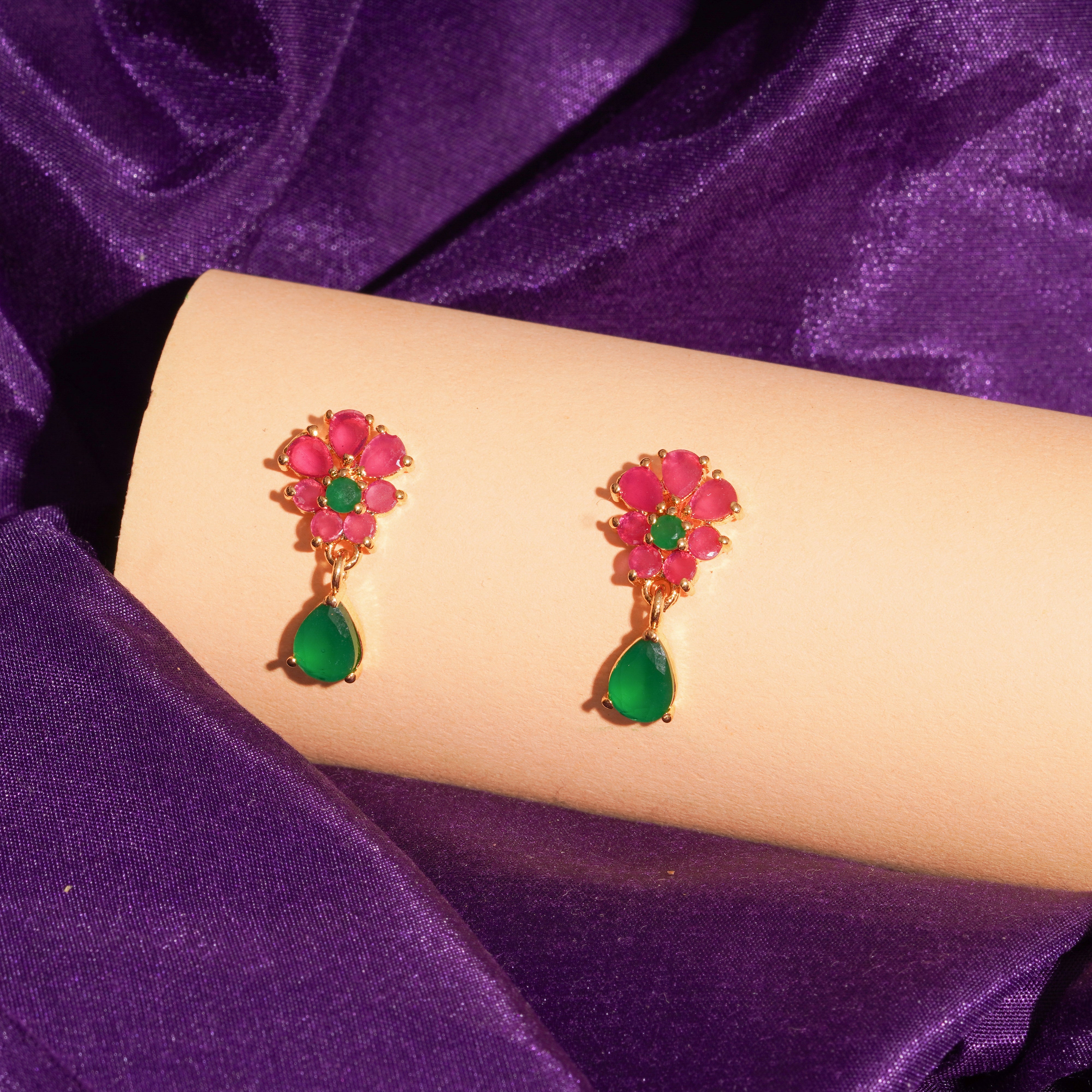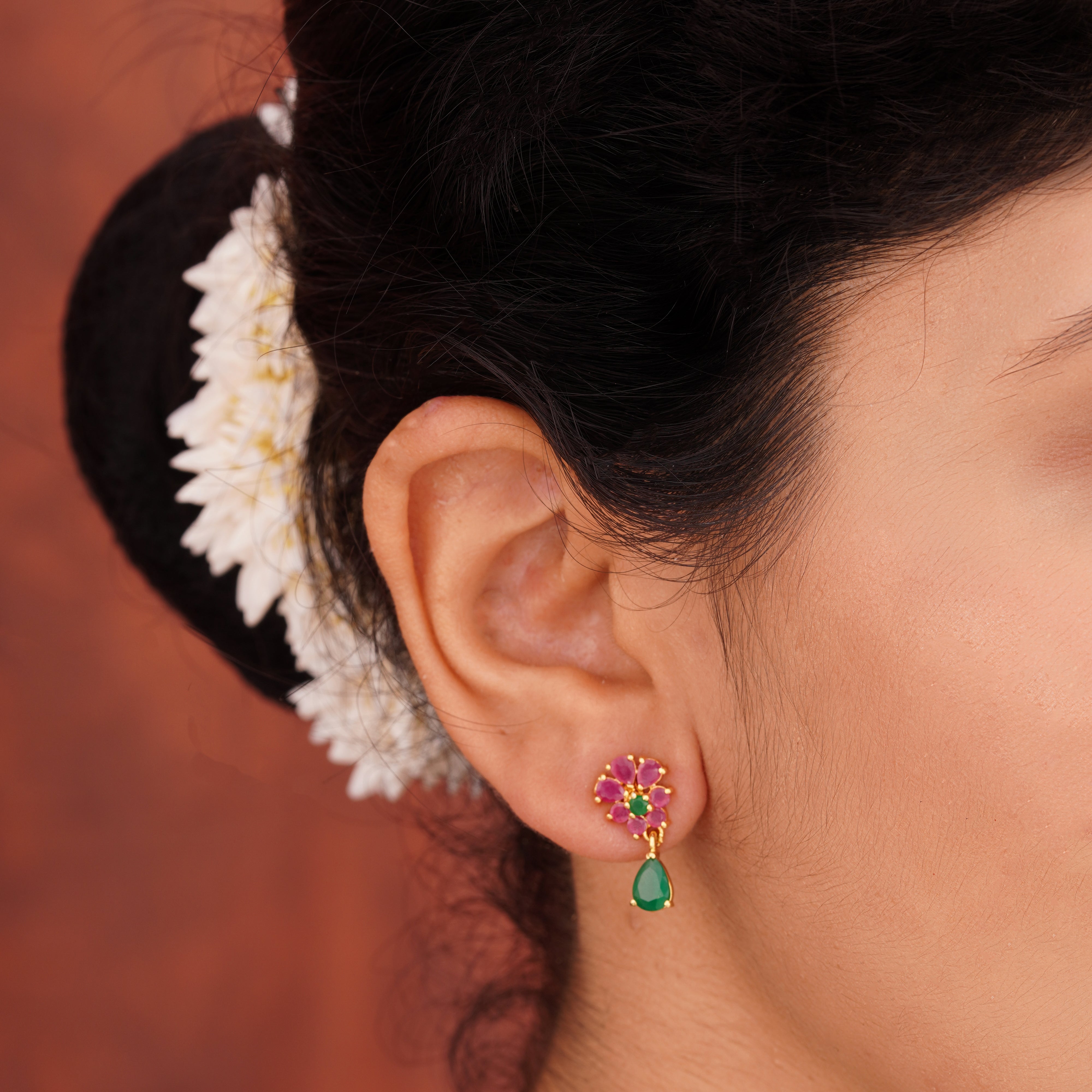 Explore our handcrafted Ruby & Emerald Silver Ear Tops, made with high-quality silver and designed for timeless elegance.