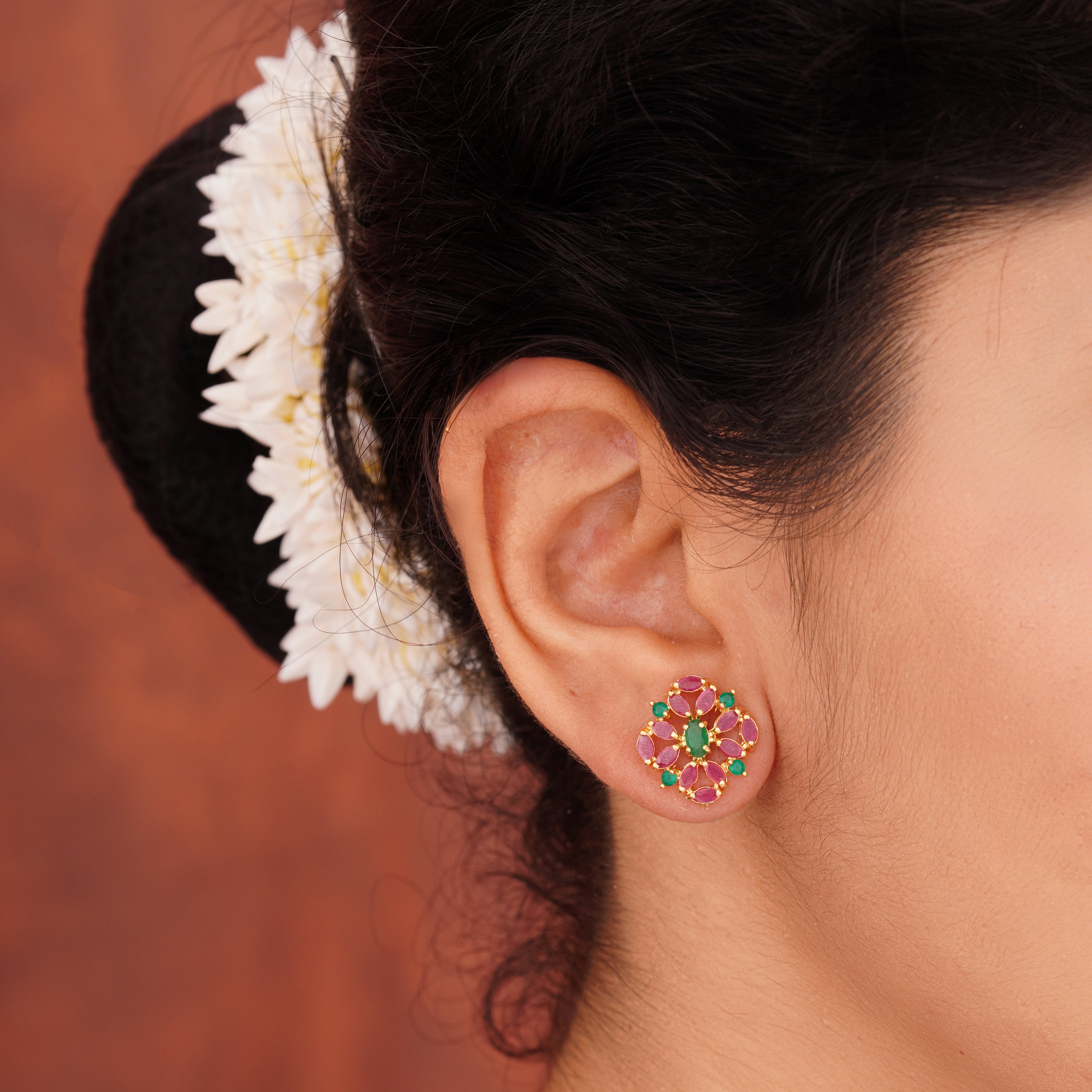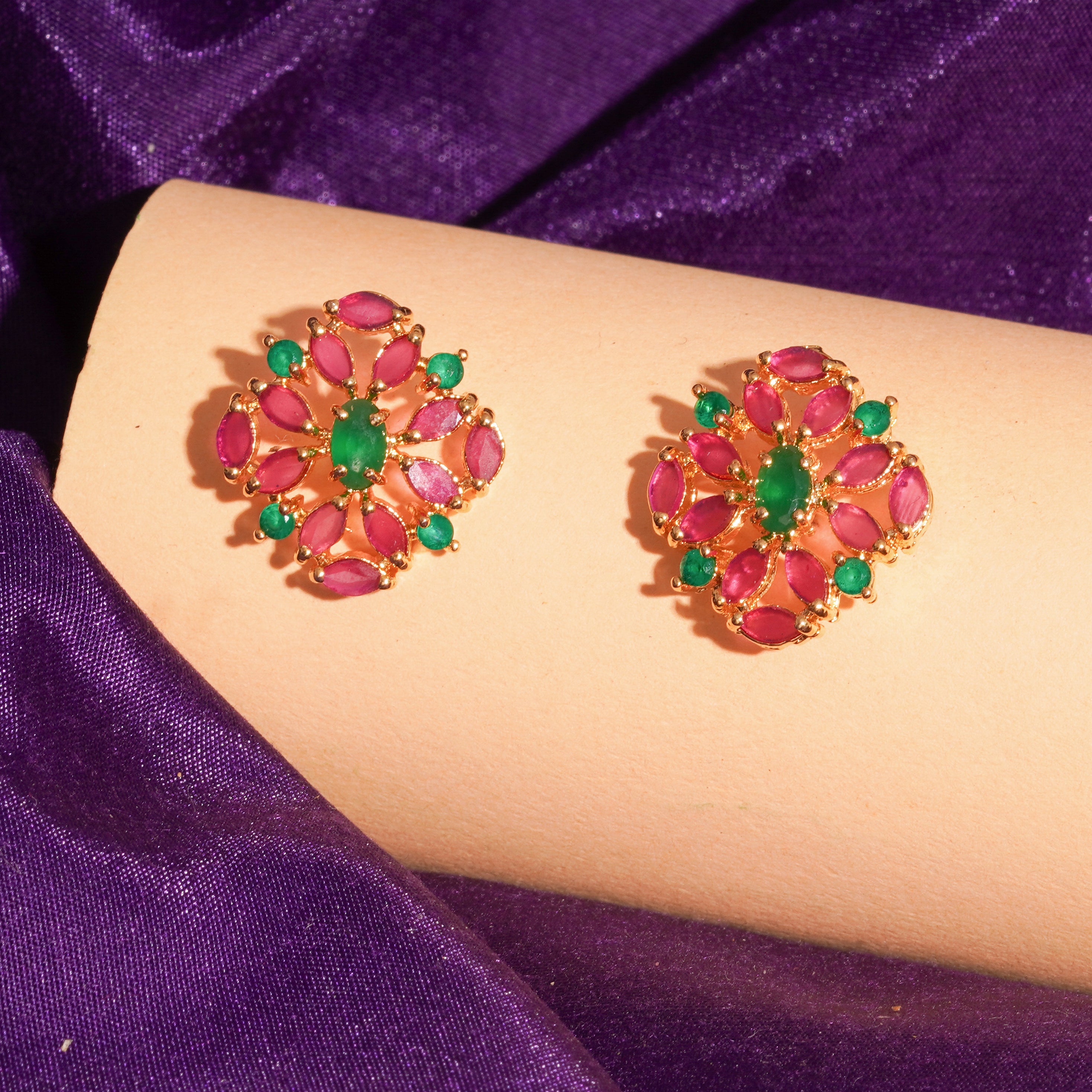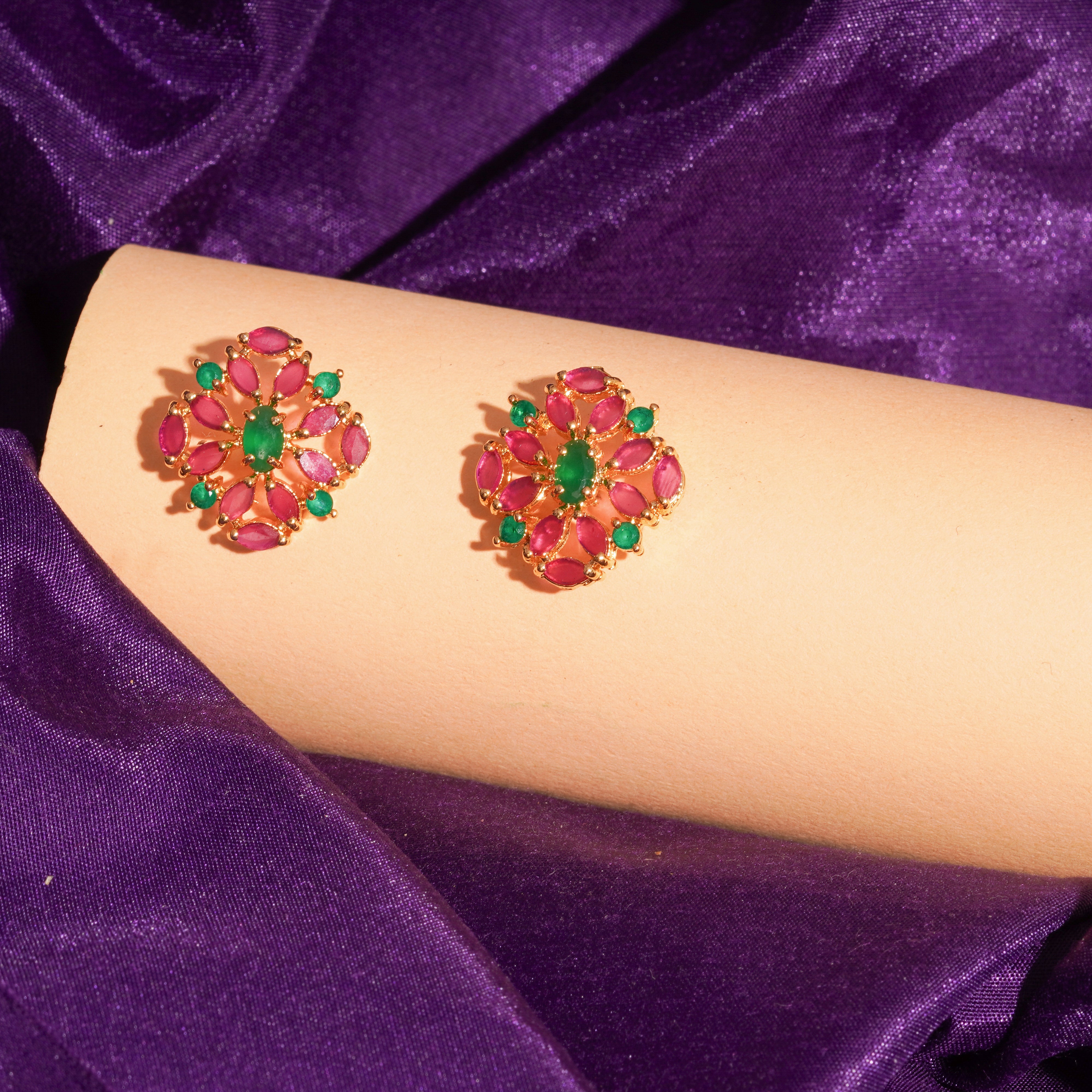 Explore our handcrafted Ruby & Emerald Ear Tops, made with high-quality and designed for timeless elegance.