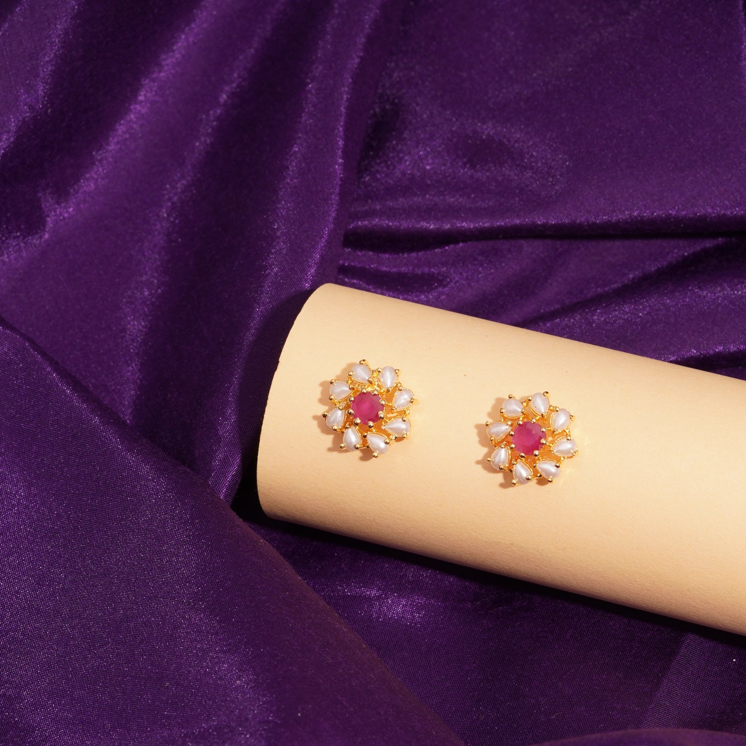 Explore our handcrafted Handcrafted Ruby Moti Silver Ear Tops, made with high-quality silver and designed for timeless elegance.